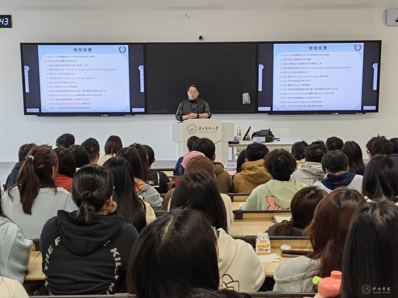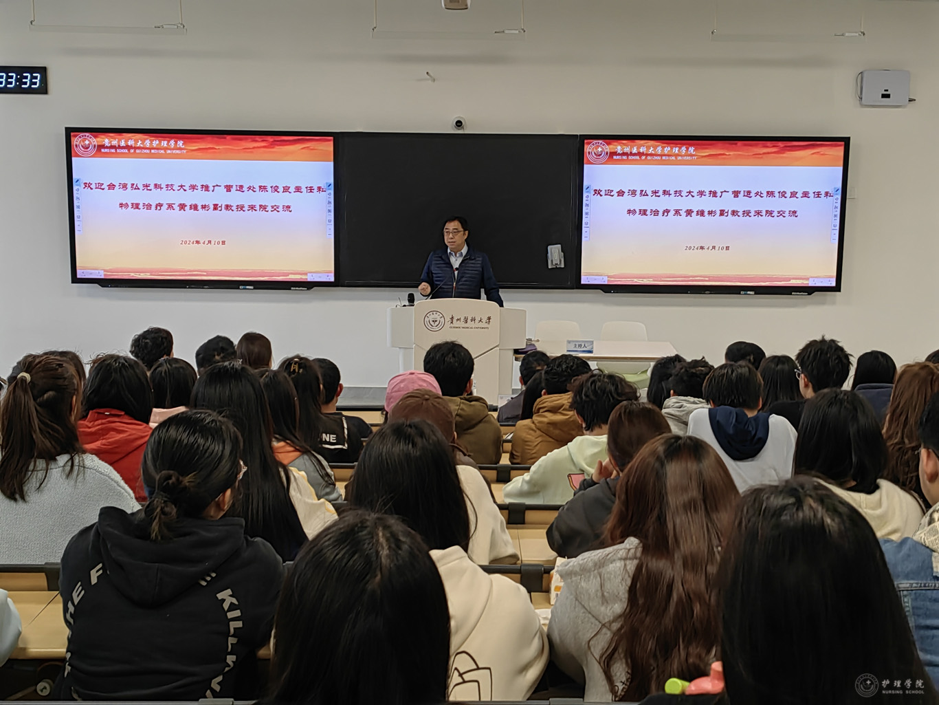 4月10日,台湾弘光科技大学推广营运处主任陈俊良及物理治疗系副教授黄维彬到永利交流。永利集团304官方入口党委副书记兼纪委书记何为、副院长王秀红、副处级组织员张黎、学校国际交流合作处港澳台事务管理科科长龙章波、永利集团304官方入口相关专业教师及2023级本科生代表近120余人参加交流活动。交流活动由王秀红主持。