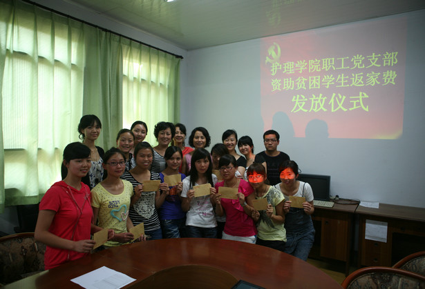 资助仪式后,杨英副书记作了讲话:“眼下又到了同学们的返家之际,希望发给每个同学的一百元钱能够为大家的返家之程带来帮助,在座的20位同学都是贫困生里面品学兼优的,老师和同学们都见证了你们的优秀,希望这次的资助为同学们带来帮助之时,也给同学们带来鼓励。”杨英副书记也对大家提出几点要求:在座的20名同学多半是党员,预备党员和积极分子,希望大家牢记党的宗旨,做一个合格的共产党员;现在正值考试之际,希望大家认真复习,考出自己的真实水平,在今后的学习和生活中更加刻苦努力,取得更好的成绩。