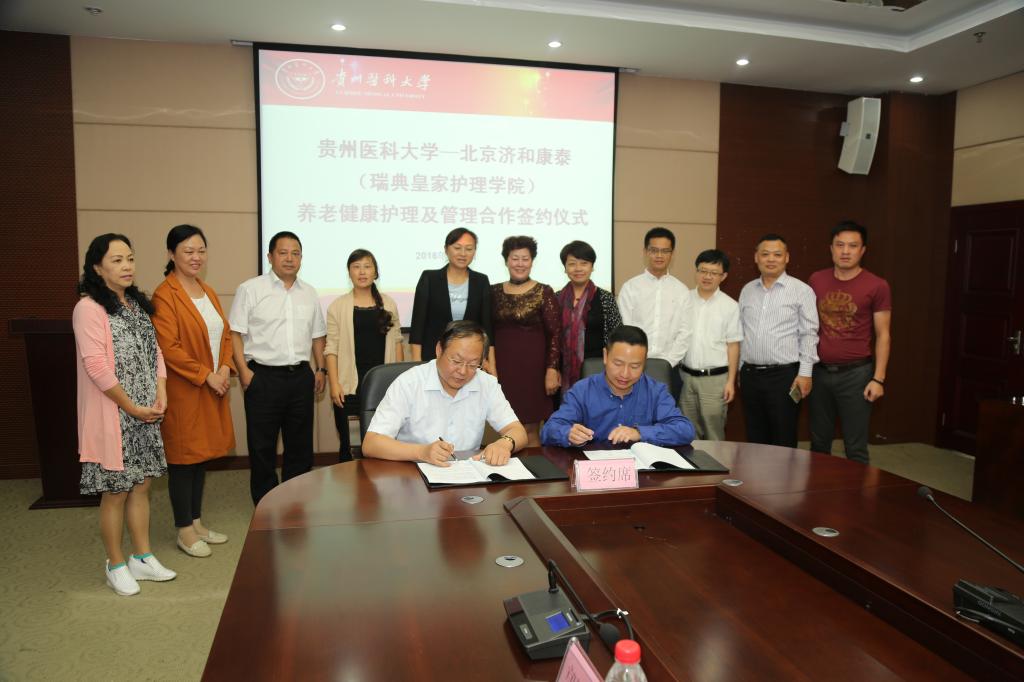 9月1日下午2:30在北校区行政楼6楼连廊会议室,我校与北京济和康泰有限公司(瑞典皇家永利集团304官方入口)举行了养老健康护理与管理合作签约仪式。党委副书记、附属医院党委书记刘兴德,贵阳市卫计委副主任洪阳及对外合作处处长余美娣,北京济和康泰有限公司总经理姚沂一行,我校有关部门领导、永利集团304官方入口教职工参加了签约仪式。仪式由国际交流合作处处长付启宏主持。
