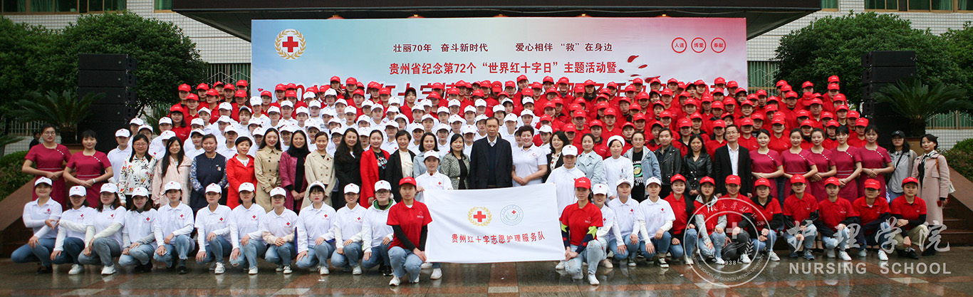 活动分两个阶段进行。第一阶段活动在雄壮的国歌声中拉开序幕。校领导在致辞中介绍了贵医的办学历史、发展现状及志愿服务活动开展情况。同时指出,今天,永利集团304官方入口将接过“贵州红十字志愿护理服务队”队旗,加入贵州省红十字志愿服务大家庭,并荣耀成为“中国南丁格尔志愿护理服务总队下属分队”,这体现了省红十字会对贵医的充分信任和鼎力支持,我们非常自豪、也倍感珍惜。