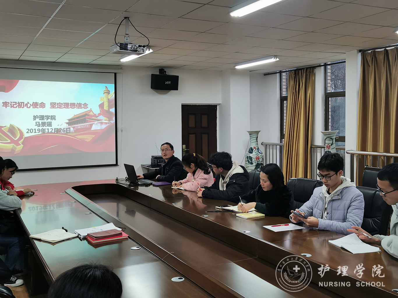 随后学生第一党支部书记李颖以《发展党员工作程序及常见问题》为题,就党员发展的几个阶段、对应材料、归档要求、注意事项等方面进行了详细介绍,并对各项培养材料的撰写要求进行培训。学生第二党支部书记马景瑶作了题为《牢记初心使命 坚定理想信念》的分享。