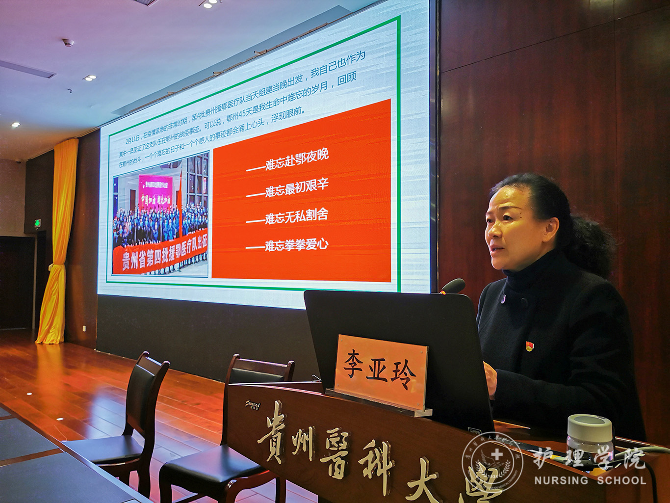 11月4日,为了在全院师生中深入学习和贯彻习近平总书记在全国抗击新冠肺炎疫情表彰大会上的重要讲话精神,也为了弘扬抗疫精神,发挥榜样作用,永利集团304官方入口在南校区道德讲堂举行了援鄂英雄事迹报告会。会议由院党委书记杨英主持,永利集团304官方入口院长、304永利集团登录入口附属医院护理部主任李亚玲作为援鄂医疗队代表进行主题报告。永利集团304官方入口全体教师及部分学生代表参会。