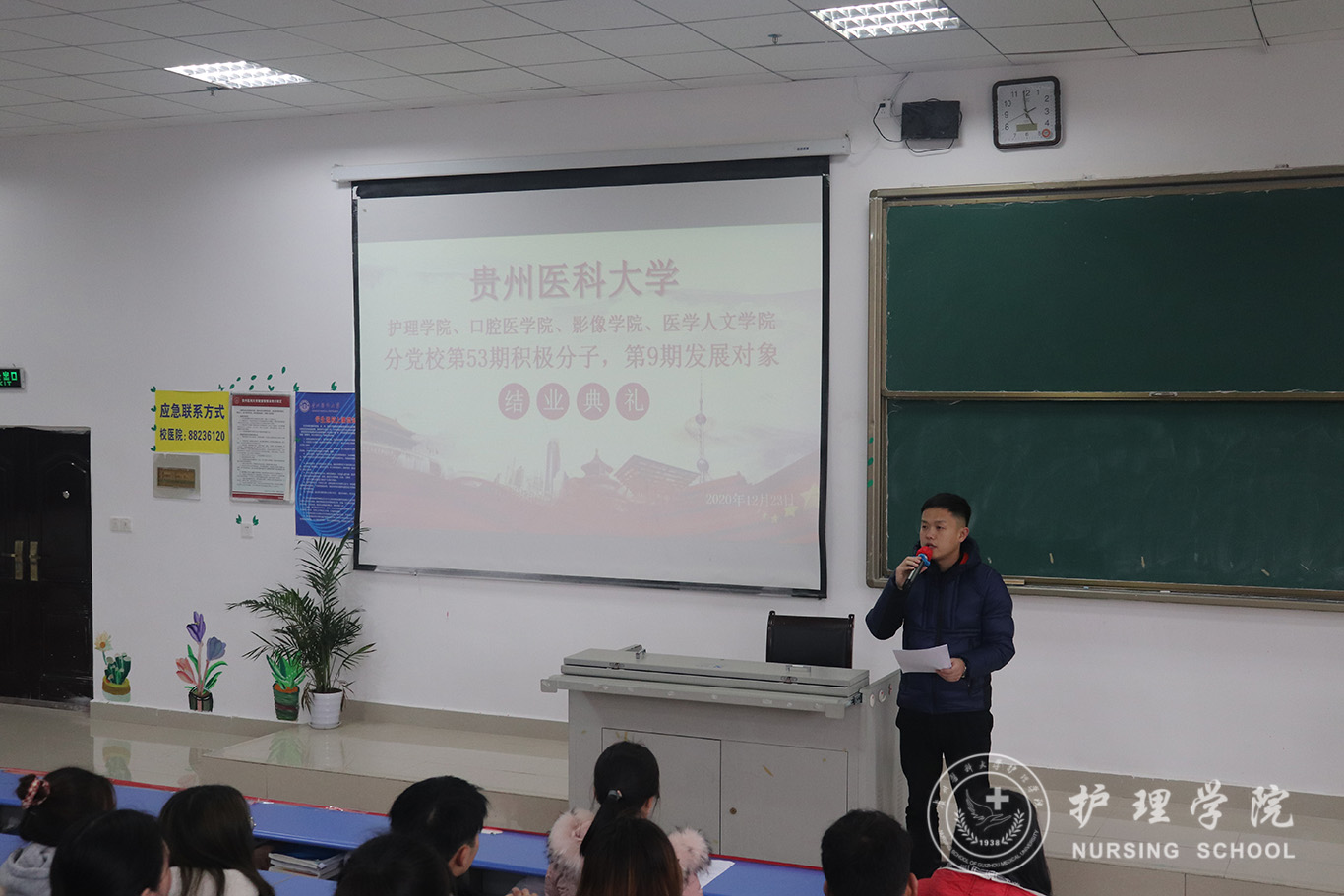 12月23日,永利集团304官方入口、医学影像学院、口腔医学院、医学人文学院分党校第53期入党积极分子和第九期发展对象培训班结业典礼在南校区X1501教室圆满举行,永利集团304官方入口党委副书记何为、学生党支部书记杨叶卿、李杏春及全体学员参加了此次会议,会议由永利集团304官方入口正科级组织员曾敏主持。