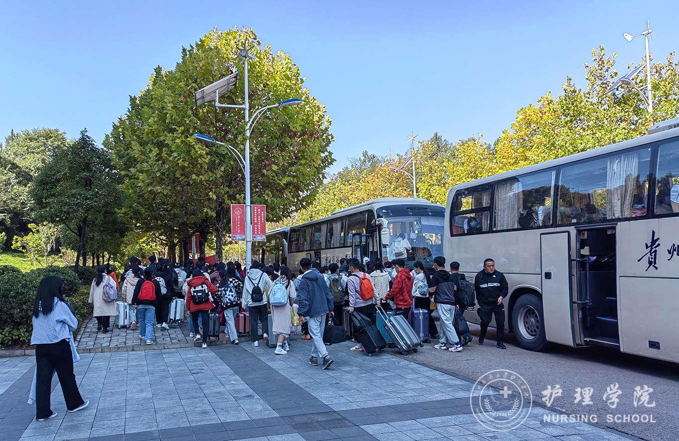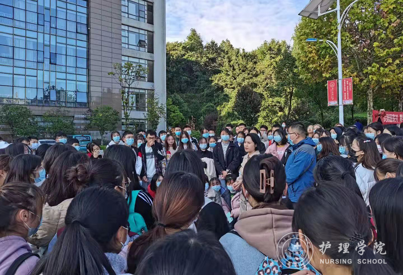 次日8点,所有驰援遵义的师生个个精神饱满,充满斗志,分别在南北校区集合。杨英、学院党委副书记何为、全体辅导员到现场为这611名白衣战士壮行。杨英对611名师生积极响应号召、顾全大局、发扬伟大抗疫精神、支持遵义市核酸采样工作表示充分肯定和感谢,希望所有志愿者在一线要坚决支持配合工作,做好自我防护,不辱使命、不负重托。8点30左右,611名师生乘车陆续从南北校区出发。