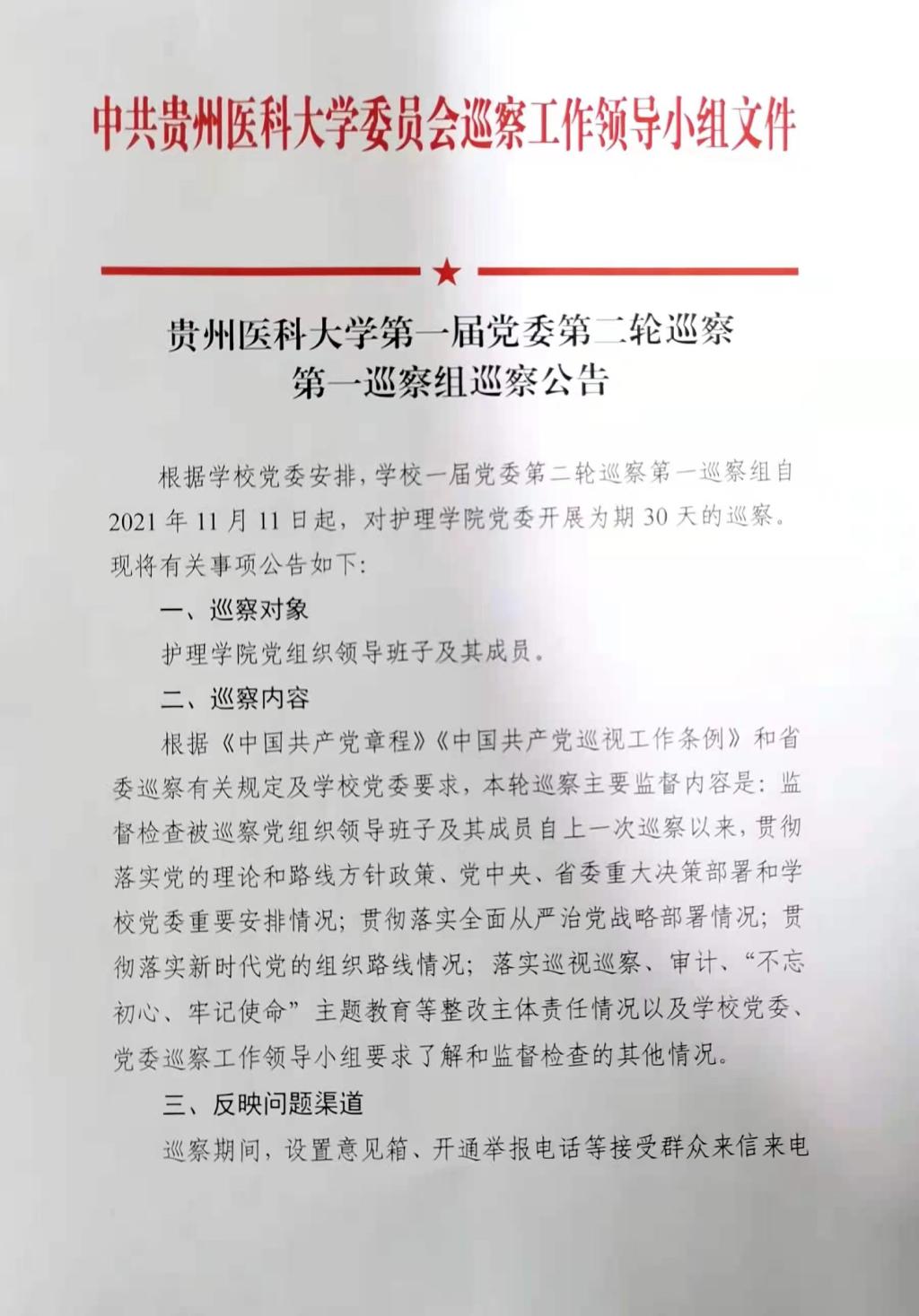 学校党委第二轮巡察第一巡察组