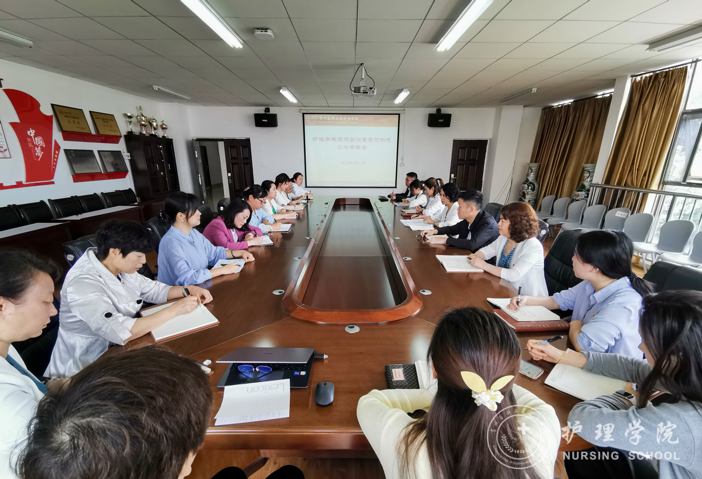 6月15日,永利集团304官方入口在南校区百川楼五楼会议室召开思想政治暨意识形态工作专题会议。会议由学院党委书记杨英主持,学院党政领导班子、副科级以上干部、各党支部书记和全体辅导员参会。