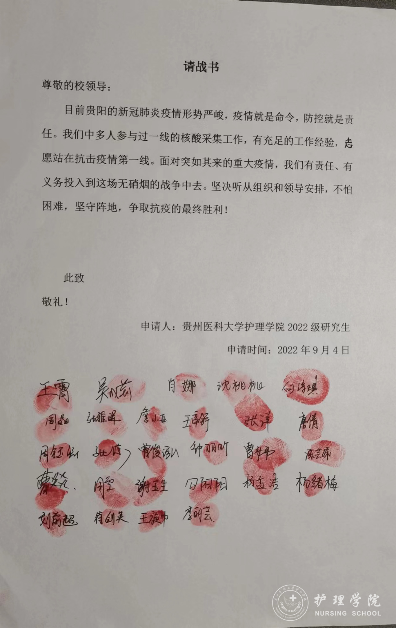 学生党员带头写下请战书