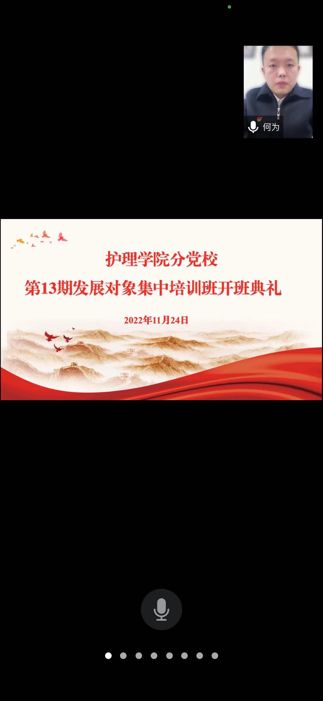 11月25日,为深入学习宣传贯彻党的二十大精神,加强发展对象的教育培训,切实提高其政治素养,端正入党动机。永利集团304官方入口分党校通过线上的方式开展了第十三期发展对象集中培训班开班典礼。出席本次会议的有永利集团304官方入口党委副书记兼纪委书记何为、永利集团304官方入口副处级组织员张黎、班主任吴晓艳以及全体学员。会议由永利集团304官方入口正科级组织员曾敏主持。