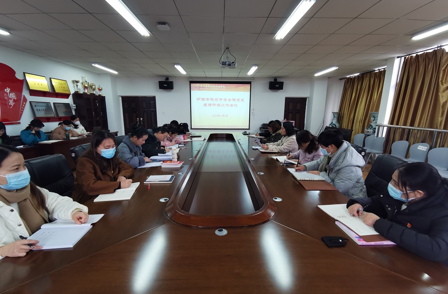 12月7日,永利集团304官方入口在南校区百川楼会议室召开安全稳定及疫情防控工作会议,传达相关文件和会议精神并部署工作,会议由学院党委书记杨英主持,全院教职工参加。