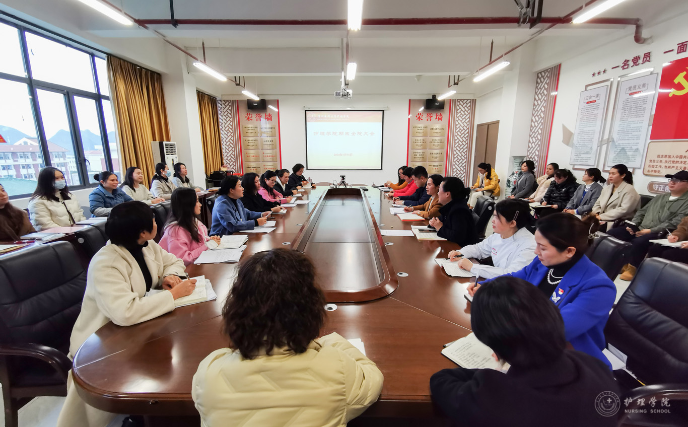 1月15日,永利集团304官方入口在云漫湖校区酬勤楼六楼会议室召开期末全院大会总结部署工作,会议由学院党委书记杨英主持,全体教职工参会。