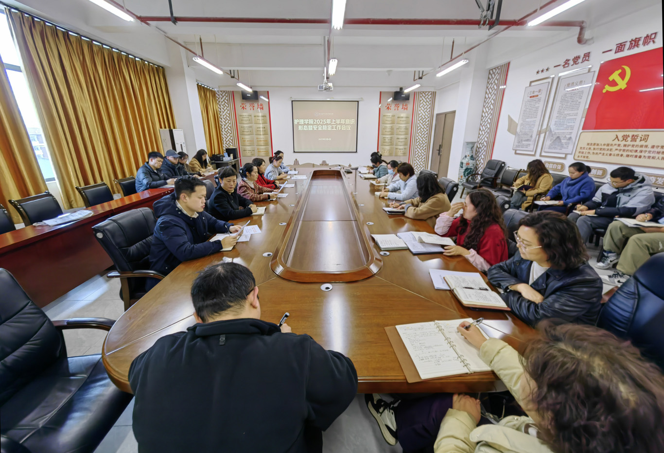 3月4日,为全面落实党中央、省委及学校党委关于意识形态、安全稳定工作相关决策部署,永利集团304官方入口在云漫湖校区酬勤楼六楼会议室召开2025年上半年意识形态暨安全稳定工作会议。会议由学院党委书记杨英主持,学院党委委员、各党支部书记、副科级以上干部和全体辅导员参会。