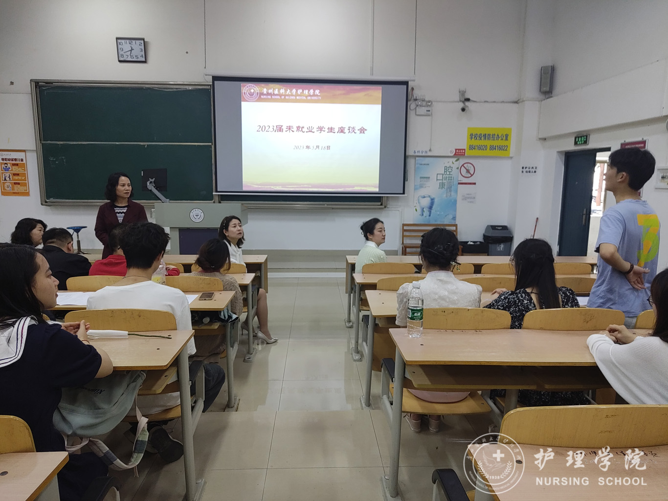 5月18日,为鼓励2023届毕业生积极就业,引导毕业生树立正确的就业观念,永利集团304官方入口在北校区4101教室召开2023届未就业学生座谈会。永利集团304官方入口党委书记杨英、副院长刘志燕、副处级组织员张黎、全体辅导员及部分2023届未就业毕业生代表参加了此次座谈会,会议由正科级组织员曾敏主持。