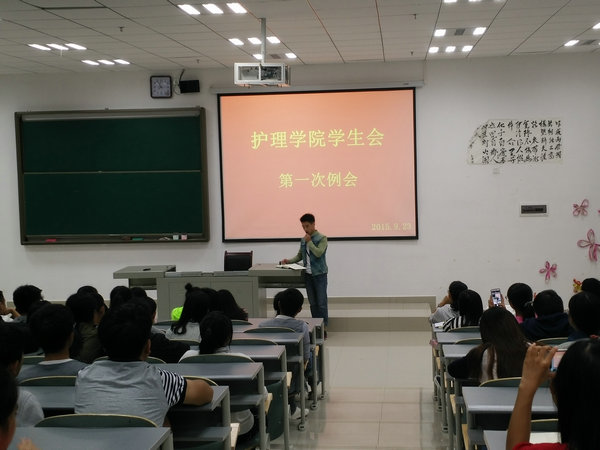 作为学生会招新后的首次例会,副主席胡庆文先对新成员的加入表示欢迎,其次介绍了本次会议的5项内容。首先是由护理简报的王旭芳同学带领大家进行政治理论学习,向大家介绍了“2015年习近平总书记博鳌论坛上的讲话”,并学习了习主席以“迈向命运共同体,开创亚洲新未来”为主题的一系列内容。王旭芳生动形象地把习近平总书记的讲话联系实际生活,告诉同学们要相互尊重,团结合作,促进共同进步,同学们听完后受益匪浅。其次是礼仪部的张进霞同学主讲的以《“9.18”你记住了什么?》为主题的团课学习。她分别介绍了“9.18”事件的发生、经过及历史意义,来启发大家应将国耻铭记于心,引以为鉴,奋发图强。作为一名大学生,更要严于律己,作风清正,政治坚定、不懈奋斗。之后,由副主席胡庆文对上学期学生会开展的活动进行了总结,并分别介绍了几项大型活动以及校园文化活动。此外,他还介绍了本学期即将开展的活动与任务。最后副主席胡庆文代表分团委、主席团对新生寄语,希望学生会全体成员做到学习与工作要兼顾,立定目标,严于律己,勇于实践,敢于创新,全面发展。
