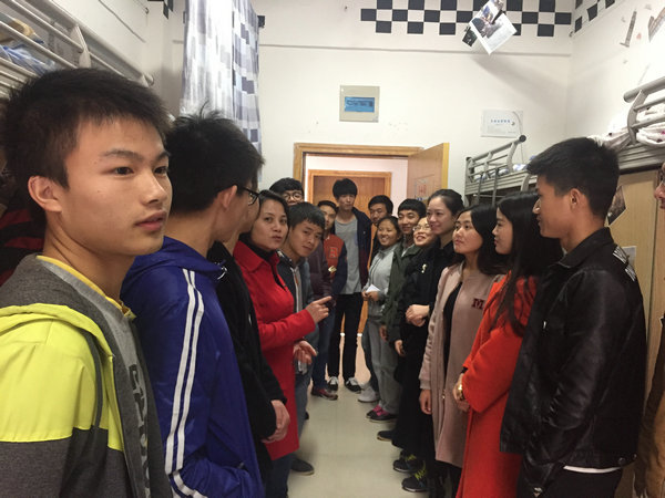 宿舍安全检查的内容主要是学生宿舍用电、宿舍卫生环境状况、寝室安全隐患等情况,重点检查了宿舍卫生、私拉电线、使用大功率电器等事项。检查发现,学生宿舍整体环境整洁,学习气氛浓厚,整体情况良好,但有个别宿舍卫生较差,物品摆放杂乱,存在用电安全隐患,老师们当场进行了指导和隐患排查,要求同学们立即整改,叮嘱同学们注意用电安全,注意财物和人身安全。杨书记还询问了学生的学习生活情况,提醒学生注意开窗通风,保持宿舍空气清新,做好宿舍卫生和自身的安全防范工作。