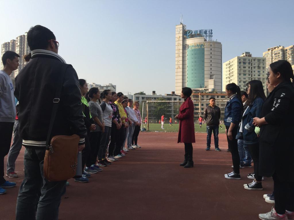 304永利集团登录入口一年一度的运动会即将开始,永利集团304官方入口的运动健儿们也进入了紧张的训练中。为了给运动员们鼓舞士气,3月25日、28日下午5点,永利集团304官方入口党委副书记杨英、学生科科长曾敏、辅导员李海林、王晓玲分别到南北校区足球场看望运动员。