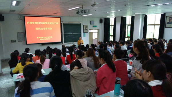 为了加强永利2016届毕业生就业工作,2016年4月21日,永利在北校区3301教室举行了一场别开生面的毕业生工作面试技巧培训会,会议邀请了贵医附属医院组织人事处陈柯老师给毕业生做了简要培训,会议由学生科科长曾敏老师主持,2016届全体毕业生参加了本次培训会。