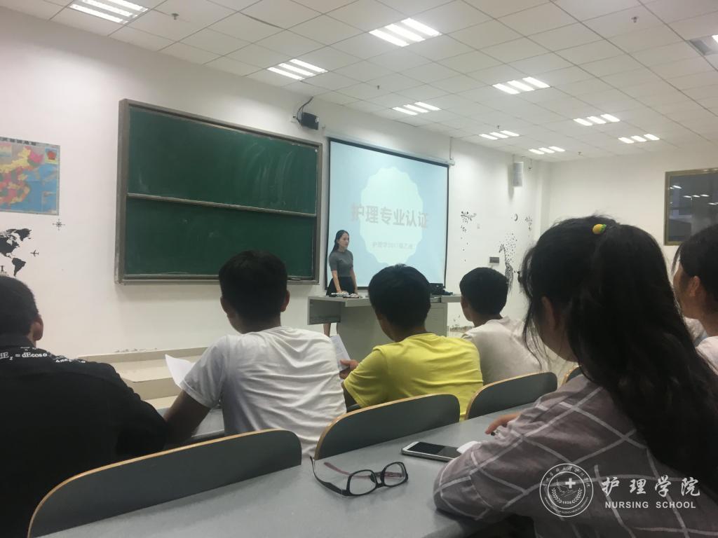 9月3日晚,永利集团304官方入口2017级甲、乙、丙三个新生班分别在南校区7404、7405和7406教室开展了护理学本科专业认证主题班会活动。2017级新生辅导员、班主任及全体新生参加了此次活动。新生班主任吴俊、王丽、李宇作为主讲人,为新生们讲授护理学专业认证的相关知识。活动由新生辅导员王晓玲、马景瑶主持。