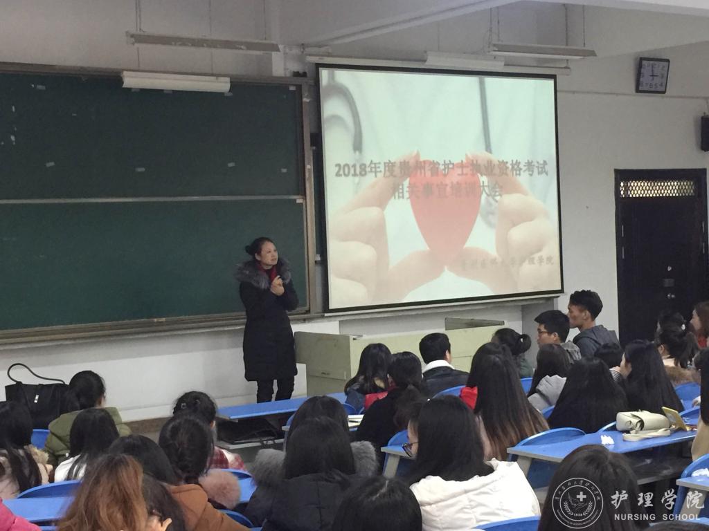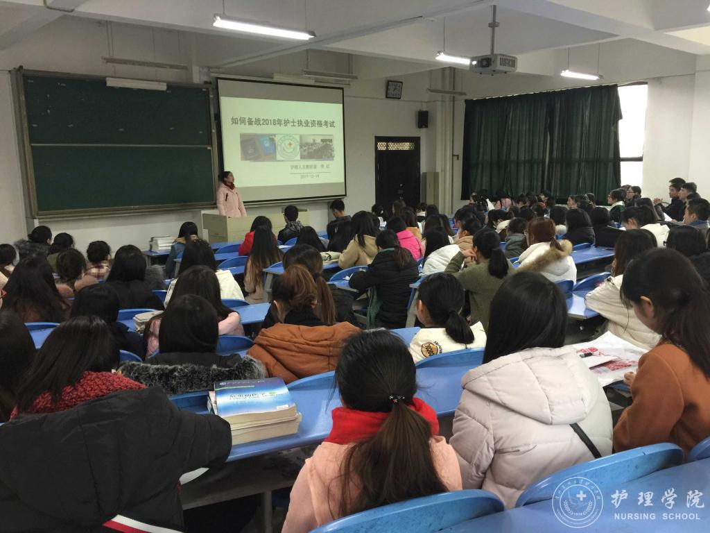 2017年12月14日下午,永利集团304官方入口在北校区2402教室召开了“2018年护士执业资格考试培训会”,本次培训会分为“2018护考题型分析”、“护士执业资格考试报名相关事宜培训”和“实习生恳谈会”三个部分,永利集团304官方入口副院长刘志燕、生产实习科科长柳忠燕、护理学专业教师李红和2014级全体护理实习生参会,会议由学生科科长曾敏主持。