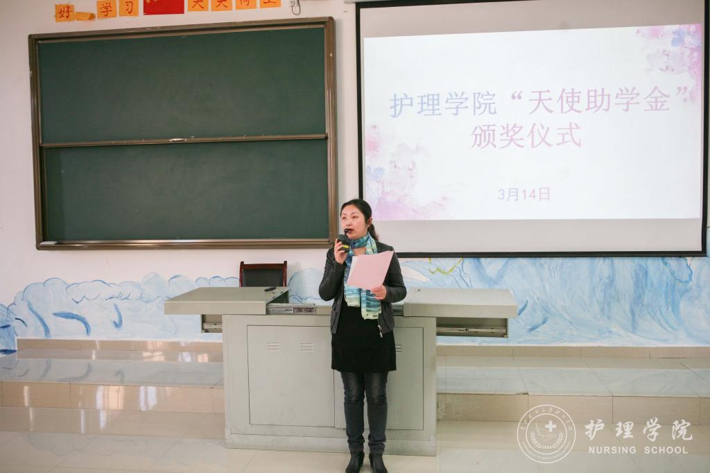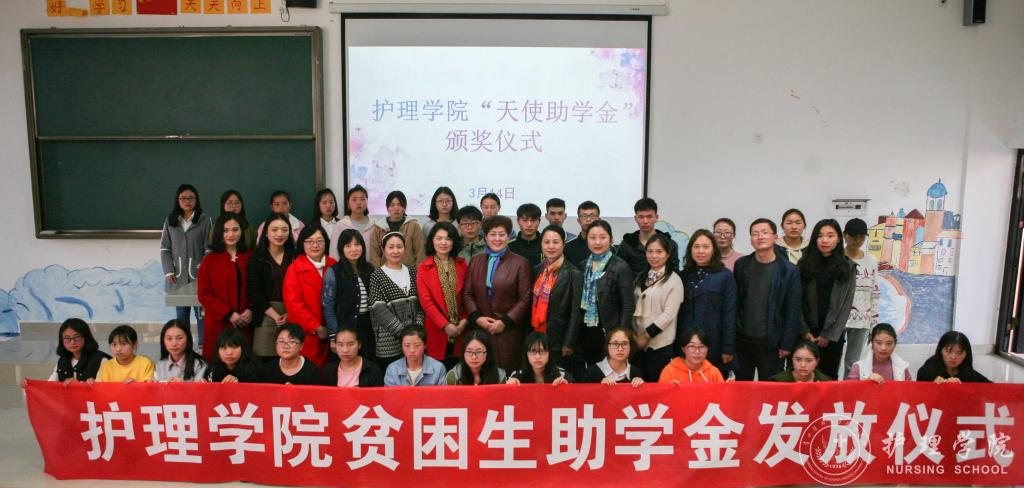 首先,学生科科长曾敏介绍了“天使助学金”的由来,并转达了“天使助学金”主要资助人浙江大学附属邵逸夫医院,从事护理工作25年的秦建芬老师对同学们的期望:“护理工作是助人的工作,一位好的护士,对患者而言,就是好的药物,所以尽自己的这一点绵薄之力,能够对同行的兄弟姐妹们的学业生活有所帮助,希望同学们能够更好地为患者提供照护。”接着,永利集团304官方入口综合办主任张黎宣读了永利集团304官方入口“天使助学金”的受助名单。张黎鼓励同学们要心怀感恩、努力学习、乐观生活,以优异的成绩来回报师长和秦女士的关心与帮助。最后,2017级护理学乙班同学黄虹久代表受助同学发言,向关心和帮助困难同学的秦女士和领导、老师表示崇高的敬意和衷心的感谢。她代表受助同学承诺:要牢记校训、院训,学好专业知识,增强实践能力,提高道德修养,为成为一名优秀的白衣天使打下坚实基础,争取在以后的工作中更好地服务人民、回报社会。