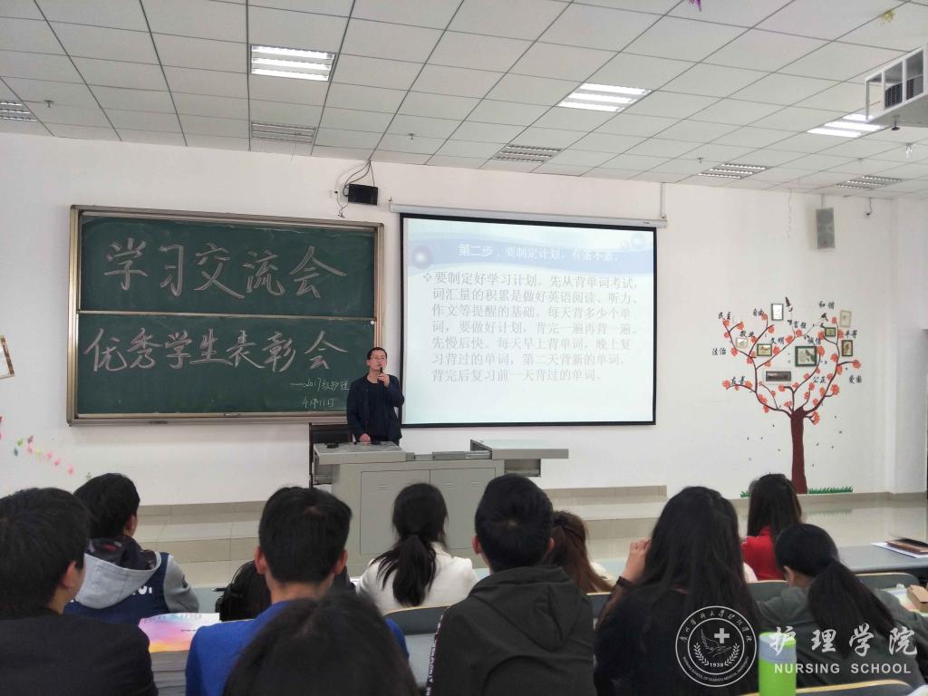 在会上,马景瑶老师向同学们强调了召开此次学习主题班会的目的和意义。接着,马景瑶从选取资料、制定计划、备考重点等八个方面分享了自己通过英语四六级考试的经验。班主任吴俊、王丽则从学习目标的明确、学习计划的制定、学习兴趣的激发、良好习惯的养成等方面讲授了专业学习的经验。学习成绩优秀的学生代表也依次分享了自己的专业学习经验、英语四六级备考经验。最后,由马景瑶、吴俊、王丽为学习成绩优秀的同学颁发了奖品,并鼓励同学们努力向优秀同学学习,争取取得优异的学习成绩,为营造良好的班风学风作贡献。