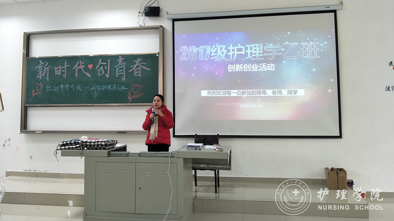 为了激发同学们的创新创业热情,提高同学们的动手能力,丰富同学们的大学生活,12月12日下午,永利集团304官方入口在南校区7404教室开展了一场以“新时代•创青春”为主题的创新创业交流分享会。此次活动由永利集团304官方入口主办,2017级护理学乙班承办。永利集团304官方入口党委副书记杨英、2017级辅导员王晓玲老师、马景瑶老师、2017级护理学乙班全体同学,以及其他班级的部分同学参加了本次活动。
