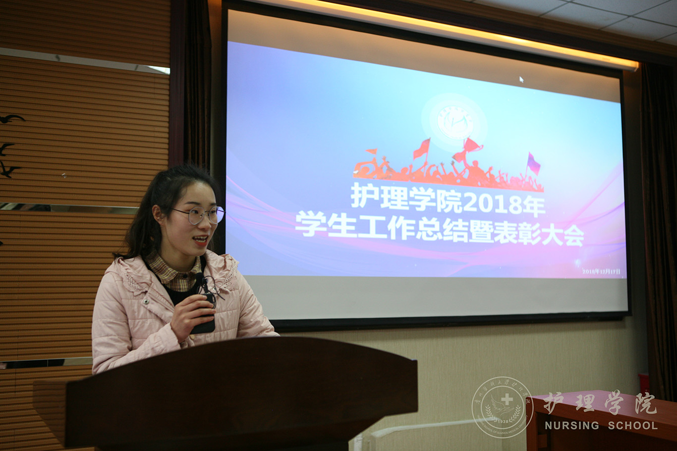 最后,2017级护理学丙班的陈娟同学代表永利集团304官方入口优秀学生干部发言,陈娟对老师们的辛勤付出表示感谢,并表示要牢记学院领导、老师的嘱托,谦虚做人、踏实工作、认真学习、感恩奋进。