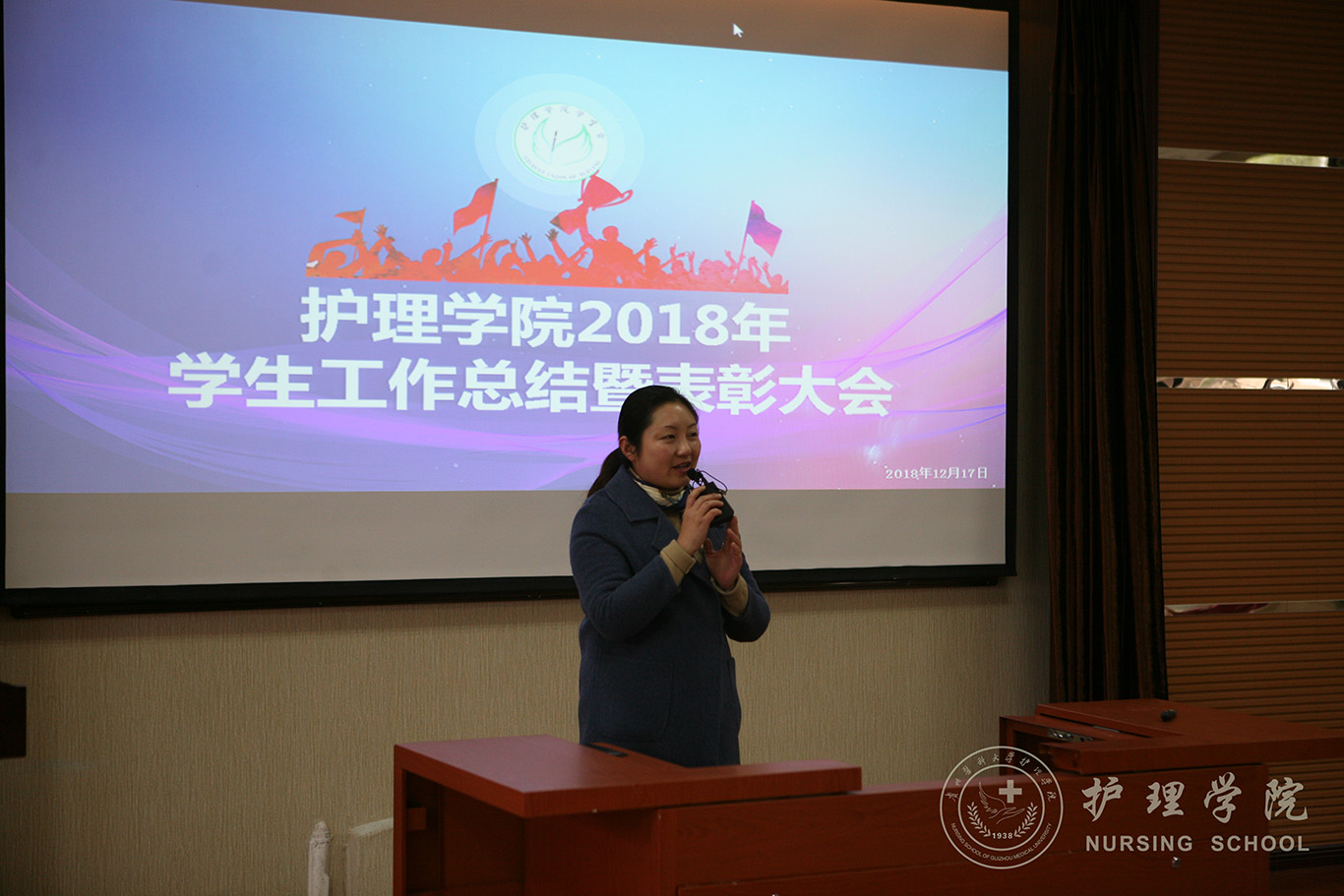 12月17日下午,永利集团304官方入口在南校区百川楼1101教室召开了2018年学生工作总结暨表彰大会。永利集团304官方入口党委副书记杨英、教学科研管理科科长王秀红、全体辅导员、部分班主任、全体学生会成员及部分学生代表参加了本次会议,会议由永利集团304官方入口学生管理科科长曾敏主持。