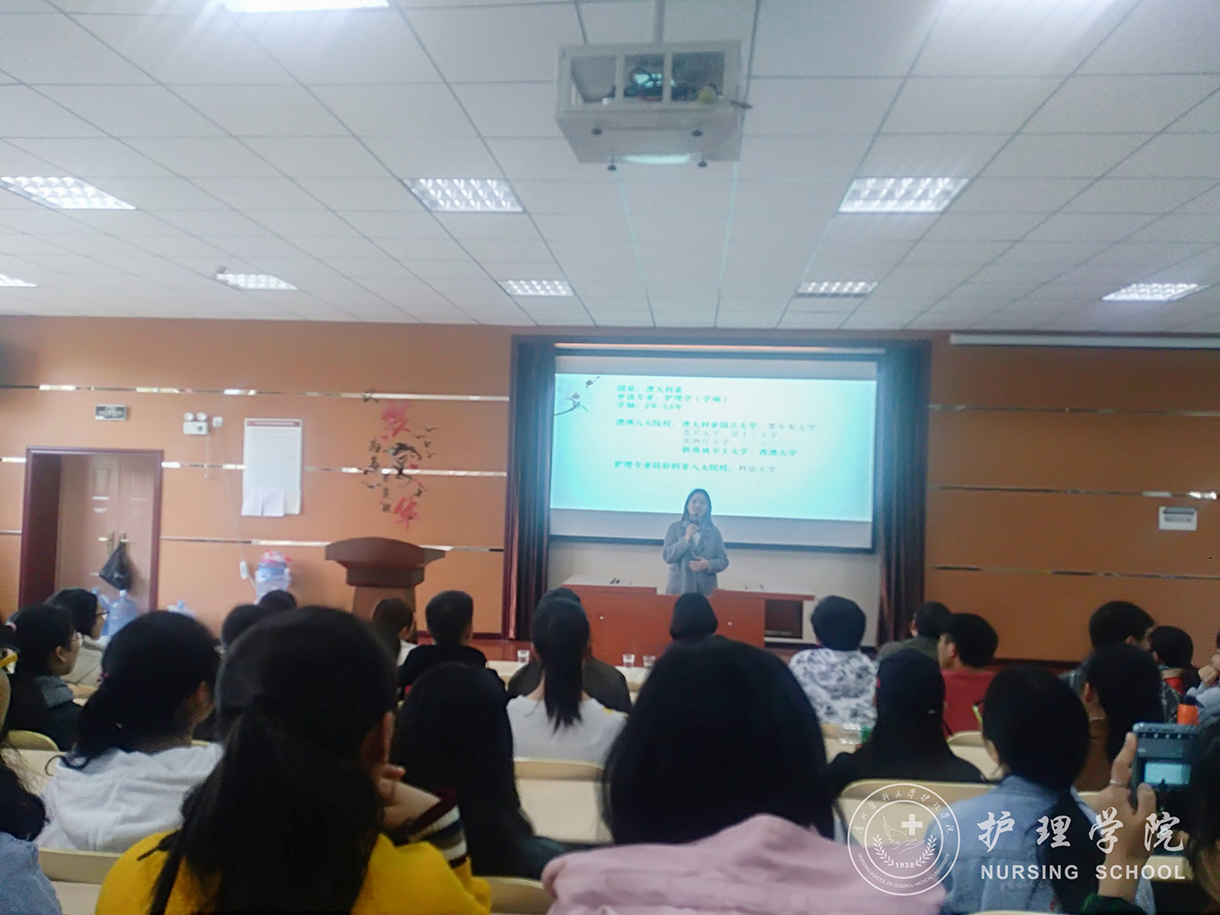 会上,徐琨老师给同学们讲述了在泰国宋卡王子大学攻读博士的经历与感受,强调了学习气氛的重要性,并鼓励同学们努力提升自己的专业能力和外语水平。已经被澳大利亚昆士兰大学录取护理学硕士的刘玉凤校友分别从出国留学的录取要求、资料准备、经济要求等方面为同学们进行了讲解。即将赴美国海格斯大学攻读的罗琳校友给大家分享了从“学渣”逆袭到考取硕士的经历。精彩的分享引发了现场的热烈讨论,参会的师生均感到通过本次大会收益颇丰,为他们人生规划增加了一个方向。