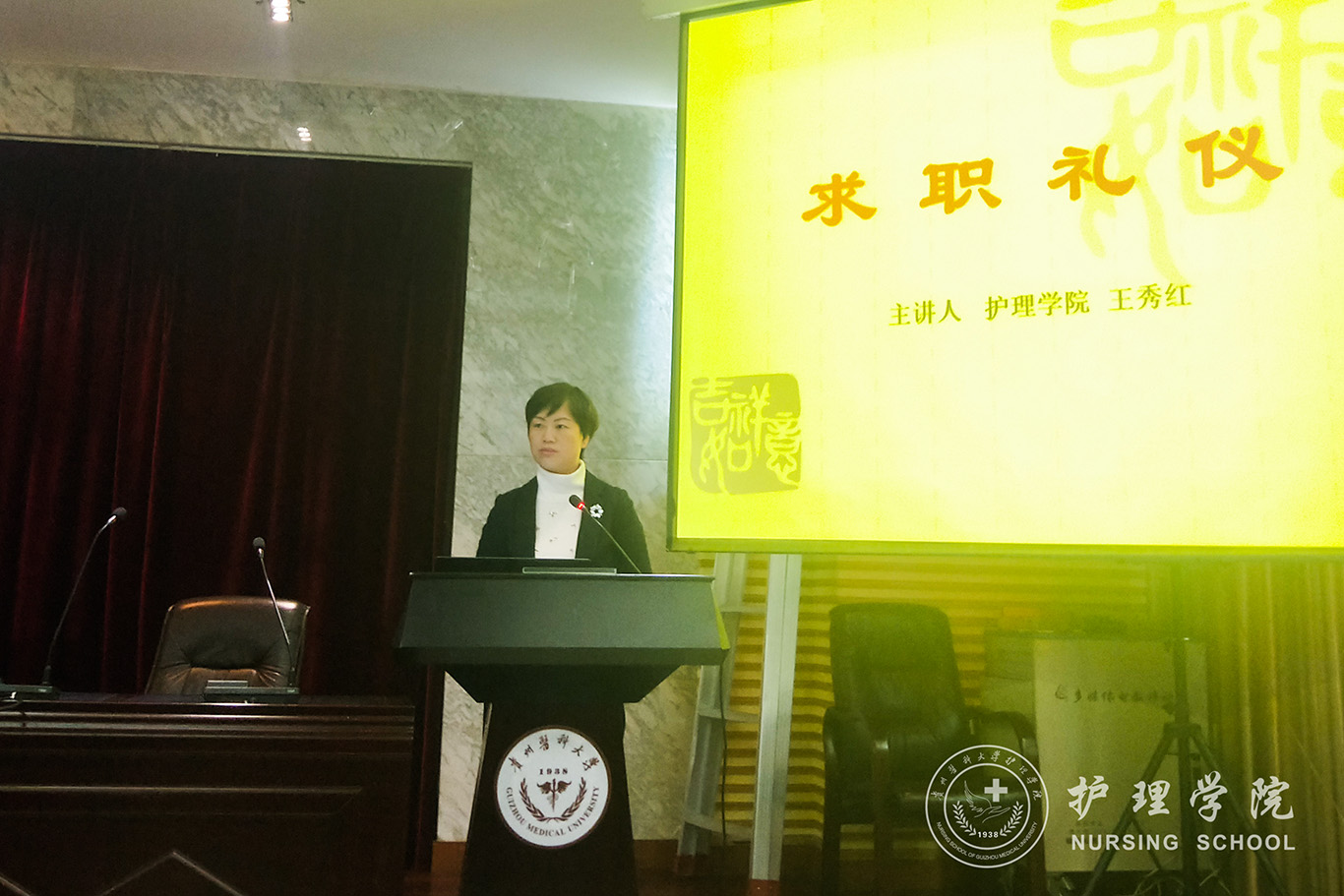 讲座中,党委副书记王秀红从专业的角度,深入浅出的向大家介绍了礼仪的概念、特点及重要性。她指出礼仪是通过律己敬人的过程实现对她人的尊重与友好,是个人素养的外在体现和集中表现。她从“面试前准备、求职形象的设计、自荐礼仪”三个方面详细向大家介绍了面试时所应注意的规范和细节。