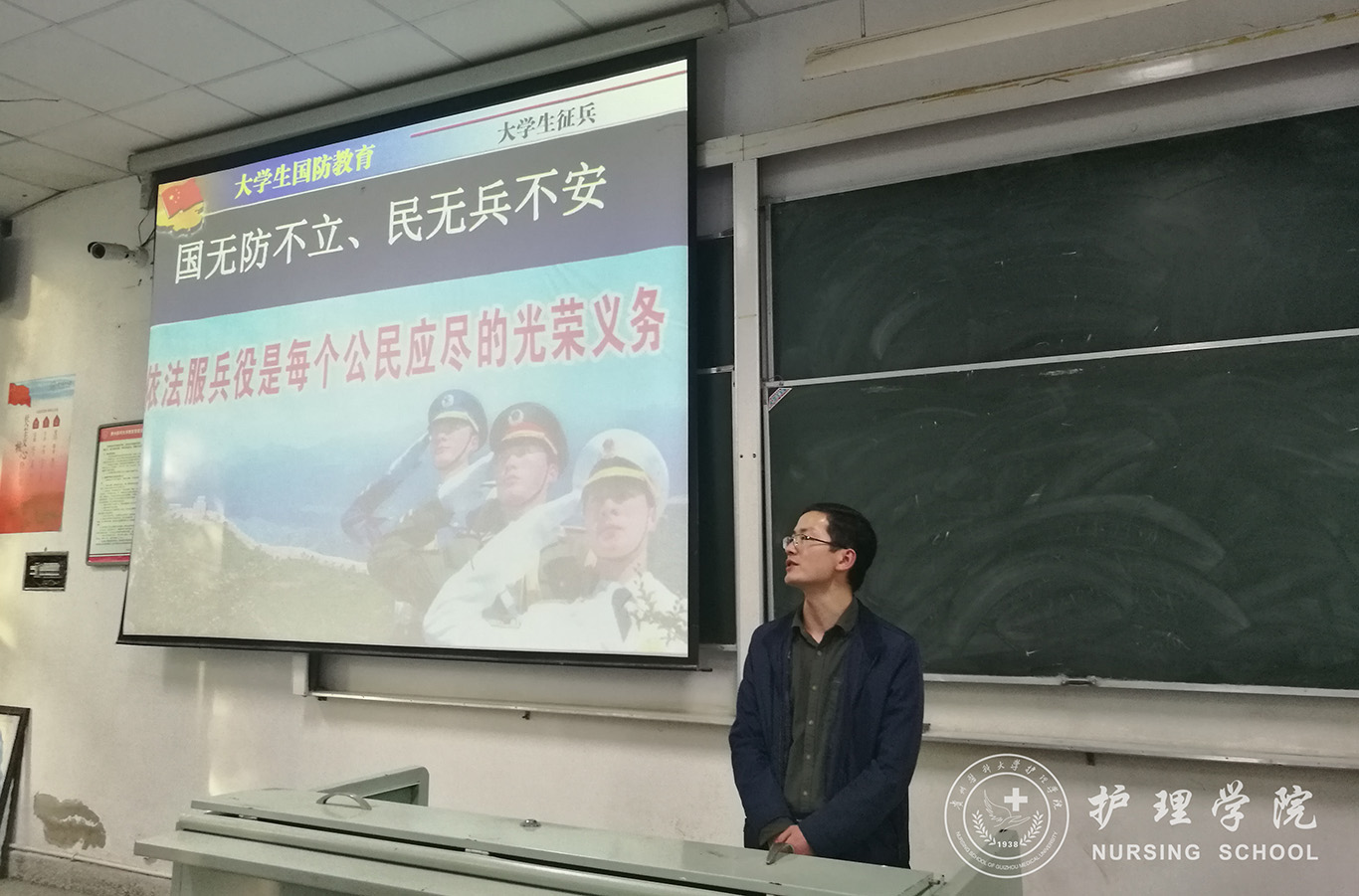 为贯彻落实全省和学校大学生征兵工作会议精神,扎实推进今年永利大学生应征入伍工作,4月18、19日,永利集团304官方入口分别在南北校区开展了大学生应征入伍主题宣讲活动。永利集团304官方入口党政领导、学生科科长、辅导员以及全体男同学参加了本次活动。活动由辅导员马景瑶主讲。