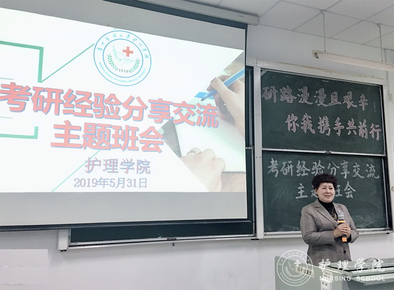 为了让学生对考研有更加深入的了解,帮助他们及时解决和处理备考中遇到的各种问题和困难,坚定正确的奋斗方向,端正考研态度,近日,护理学2016级及永利集团304官方入口学生党支部分别组织召开了“研路漫漫且艰辛,你我携手共前行——考研经验交流主题班会”和“考研经验交流分享会”,永利集团304官方入口院长贾秀英、党委副书记王秀红、学生科科长曾敏、2016级辅导员毕丽、学生第一党支部书记李颖、教师代表吴俊、优秀学生代表方雯等参加活动,并做分享。