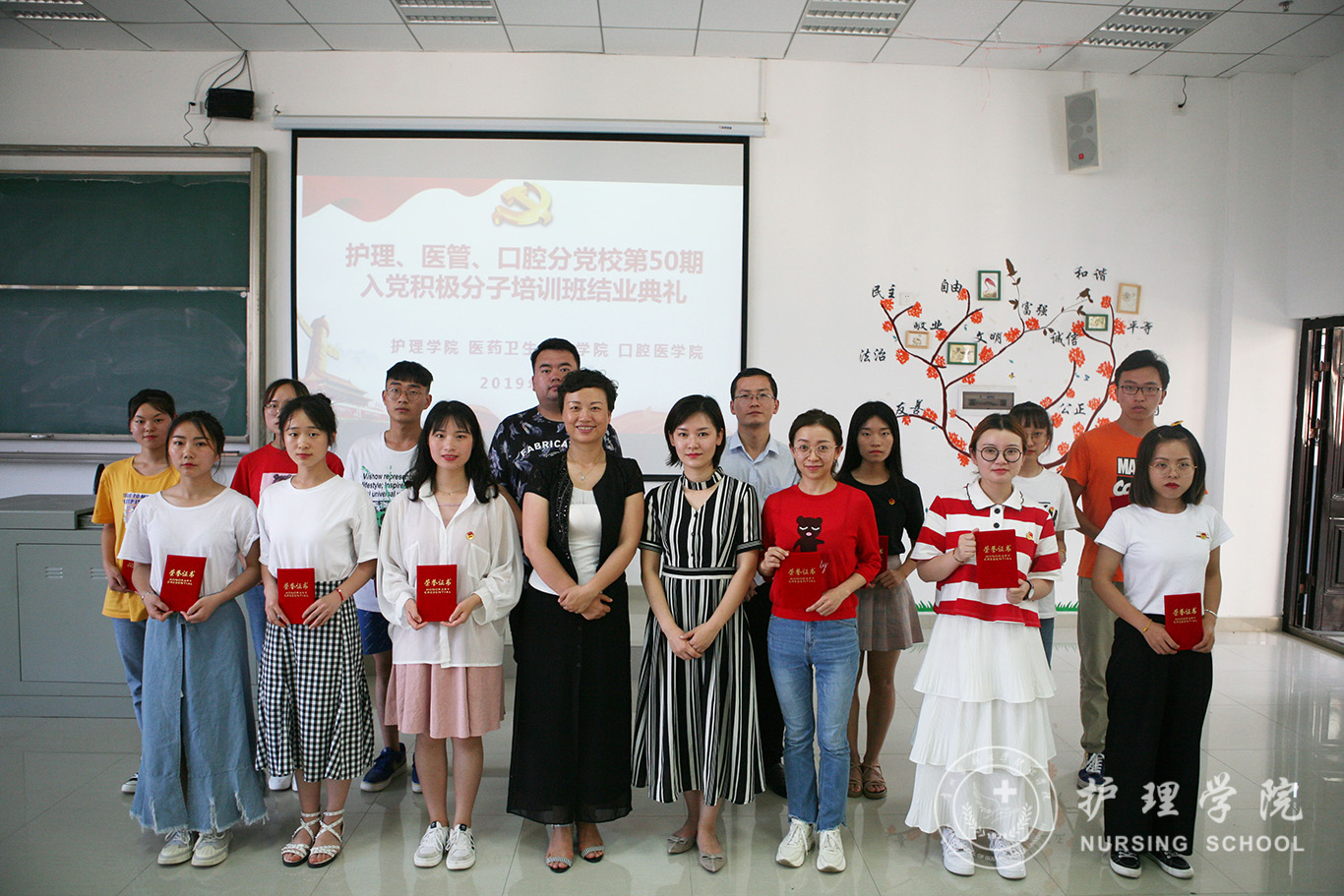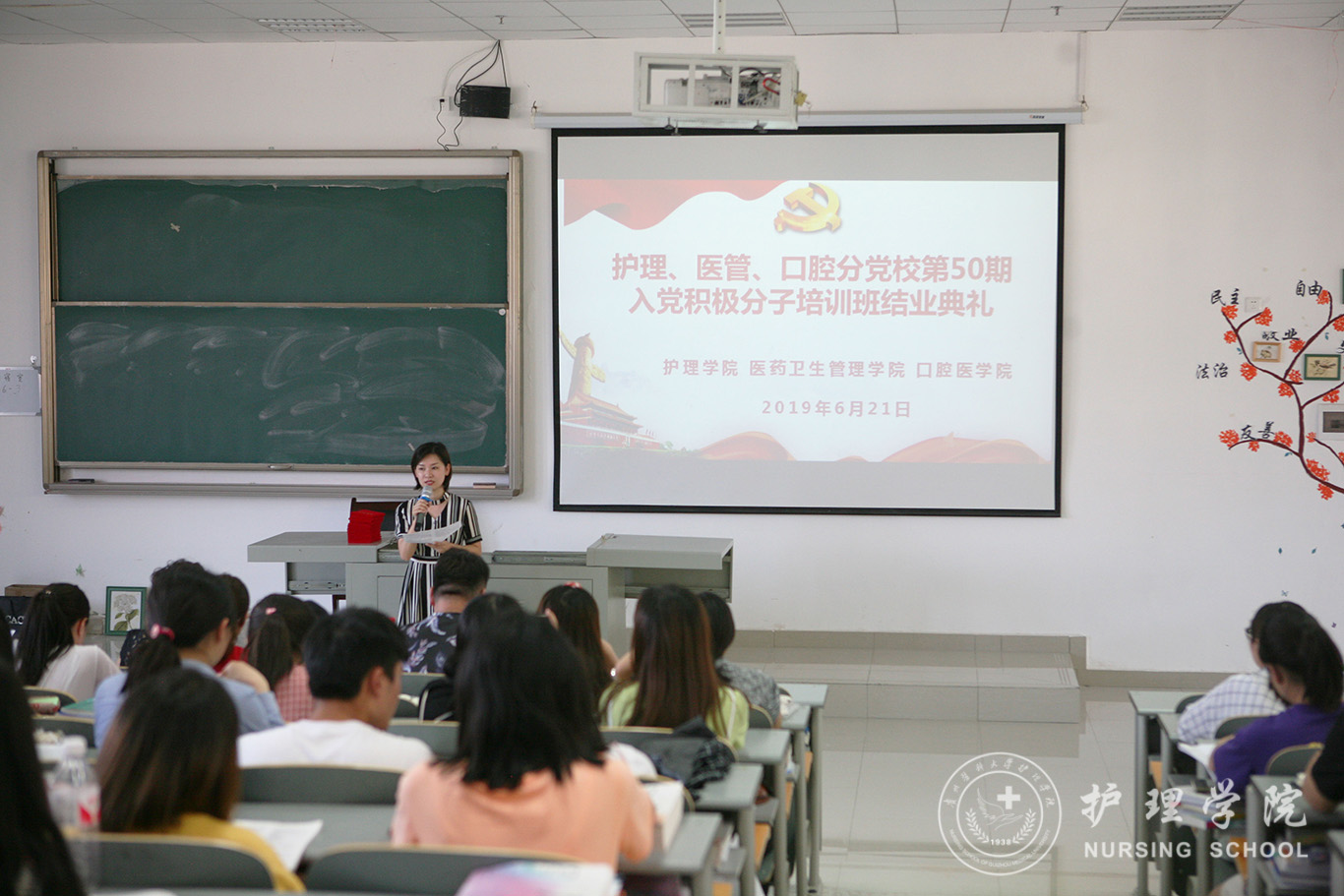 6月21日,护理、医管、口腔分党校第50期入党积极分子培训班结业典礼在南校区7404教室举行。口腔医学院党委副书记钱禾、永利集团304官方入口党委副书记王秀红、医药卫生管理学院分团委书记刘安跃及培训班全体学员参加了结业典礼。典礼由本期培训班班主任、永利集团304官方入口学生第二党支部书记马景瑶主持。