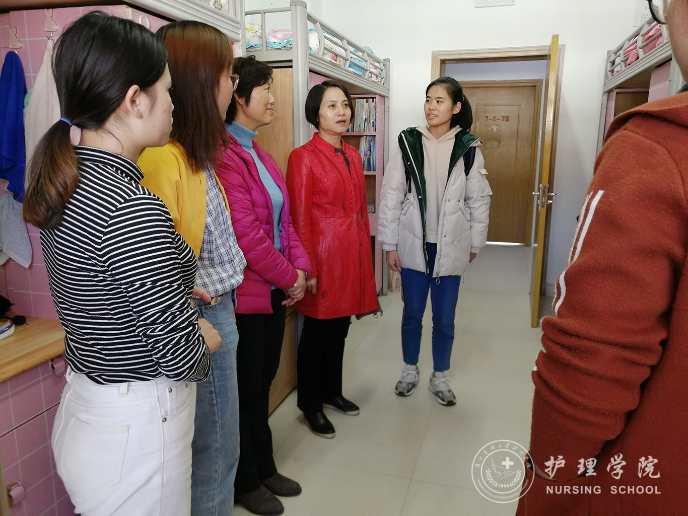 10月29日下午,为深入了解学生寝室安全相关问题落实情况,永利集团304官方入口党委书记杨英、副书记王秀红带领学生科副科长毕丽及相关辅导员一行对存在安全隐患的学生宿舍进行了回访,并开展了学生寝室安全大检查。经过一间间走访检查和同学们进行深入交谈,看到已经进行了维修的天花板,听到同学们高兴的回馈说反映问题的第二天后勤集团即对宿舍进行了维修,杨英非常高兴。回访检查过程中领导老师们再三叮嘱同学们要加强安全风险防范意识,辅导员要经常组织寝室安全隐患排查,有问题要及时向有关管理部门及时反馈沟通,确保同学们有一个安全舒适的学习生活环境。同时对同学们近期的学习生活情况进行了解,对寝室安全卫生、作息时间等提出了要求,勉励同学们莫要虚度光阴,争做新时代有为青年。