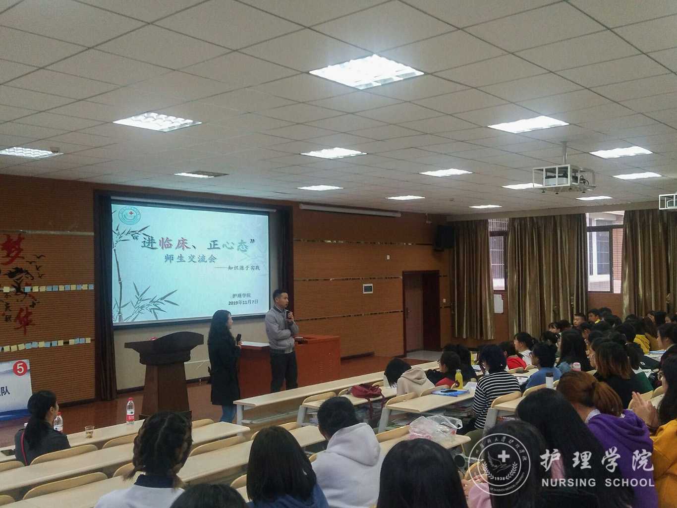 为了加深学生对护理学、助产学专业的认知,增强学生专业认同感,指引学生正确规划学习目标,激励学生奋发学习,11月7日下午永利集团304官方入口在南校区百川楼1101教室举行了“进临床,正心态”师生交流会。