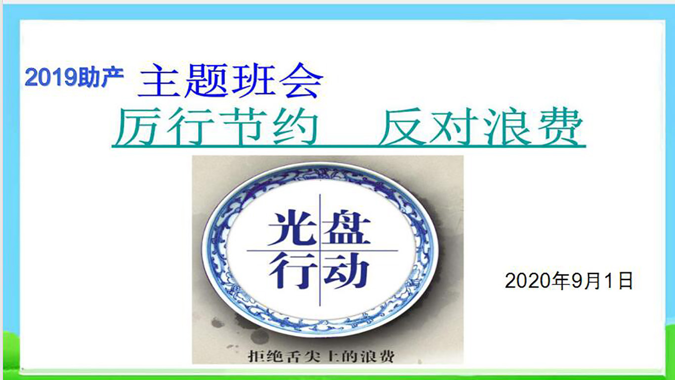 为了学习贯彻习近平总书记关于厉行节约的重要指示精神,2020年9月1日永利集团304官方入口助产学2019级在广德楼1602教室召开“厉行节俭,反对浪费”的主题班会,本次班会由辅导员曾敏组织,助产学2019级全体同学参加。