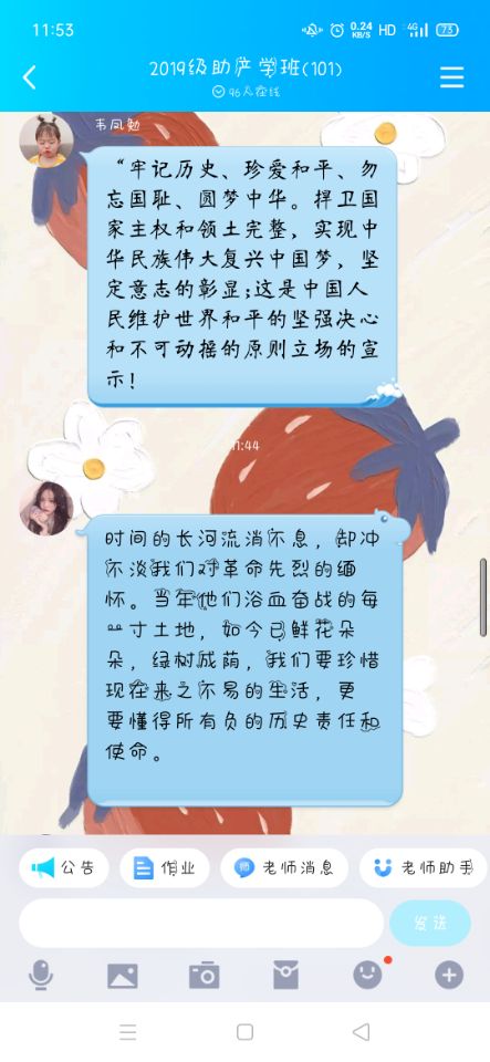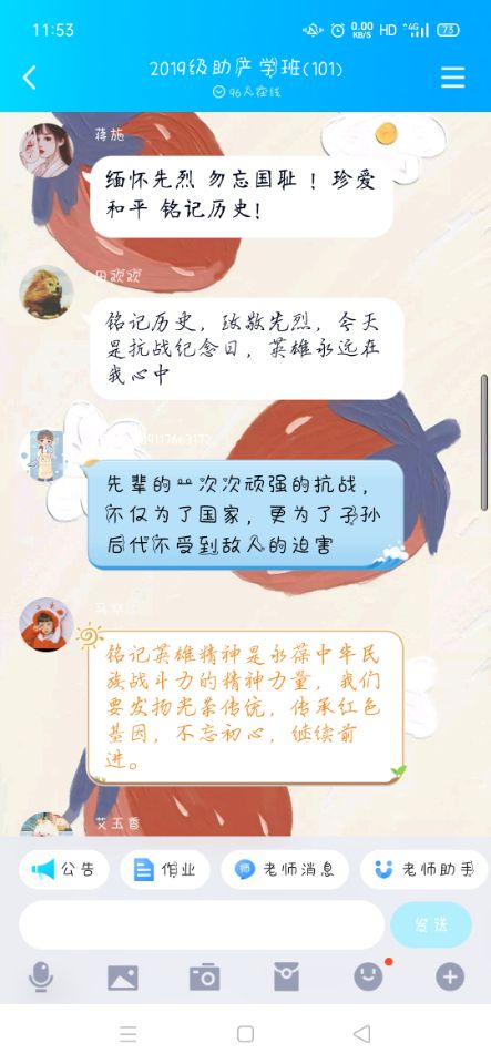 9月3日,是中国人民抗日战争胜利纪念日,也是世界反法西斯战争胜利纪念日,为纪念中国人民抗日战争胜利,9月3日永利集团304官方入口助产学2019级在广德楼1602教室召开了“铭记历史 缅怀先烈——纪念抗日战争胜利75周年”主题班会。班会由辅导员曾敏组织,团支部书记欧阳孝玲主持,助产学2019级全体同学参加。
