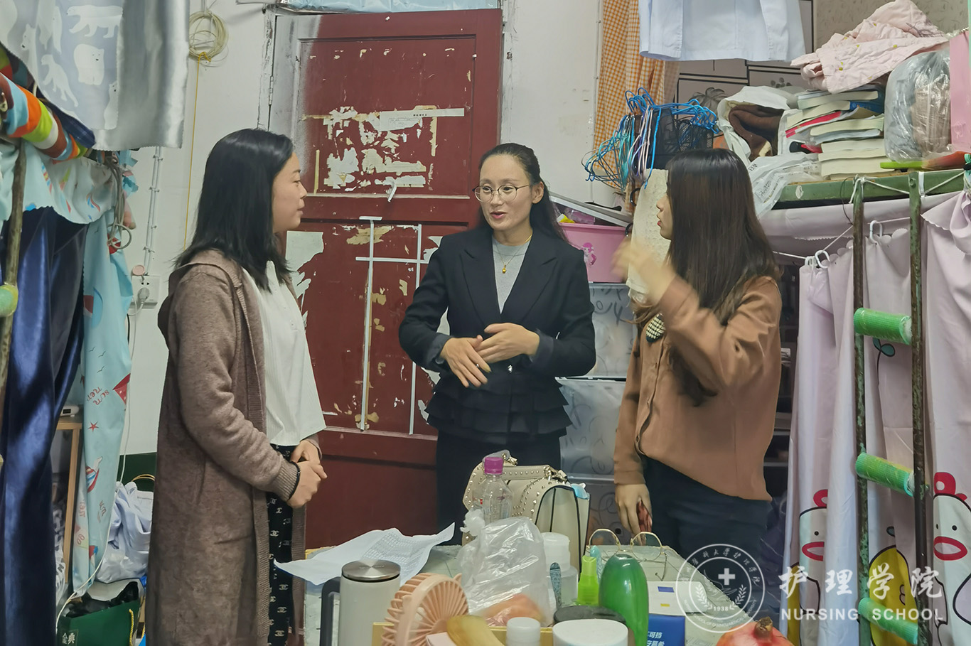 辅导员带领各班的班干对班级的宿舍进行了安全大排查,此次主要对寝室的整洁程度、通风情况及用电安全进行了检查。辅导员提醒大家:第一、疫情期间,务必保持寝室通风和卫生洁净,勤洗衣服,勤换床单被罩;第二、安全用电,禁止在寝室使用违章电器,并对违章电器的类型以及违规电器使用带来的不良后果进行了讲解,叮嘱大家一定遵守学校的宿舍管理规定;第三、注意寝室安全,随手关门,离开宿舍之前关闭水电和门窗,贵重物品谨慎妥善保管;第四、保持良好的卫生习惯,禁止在宿舍走廊摆放垃圾袋。