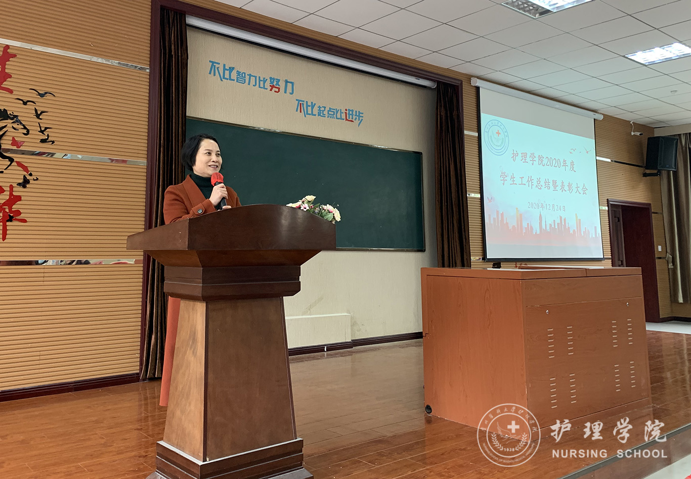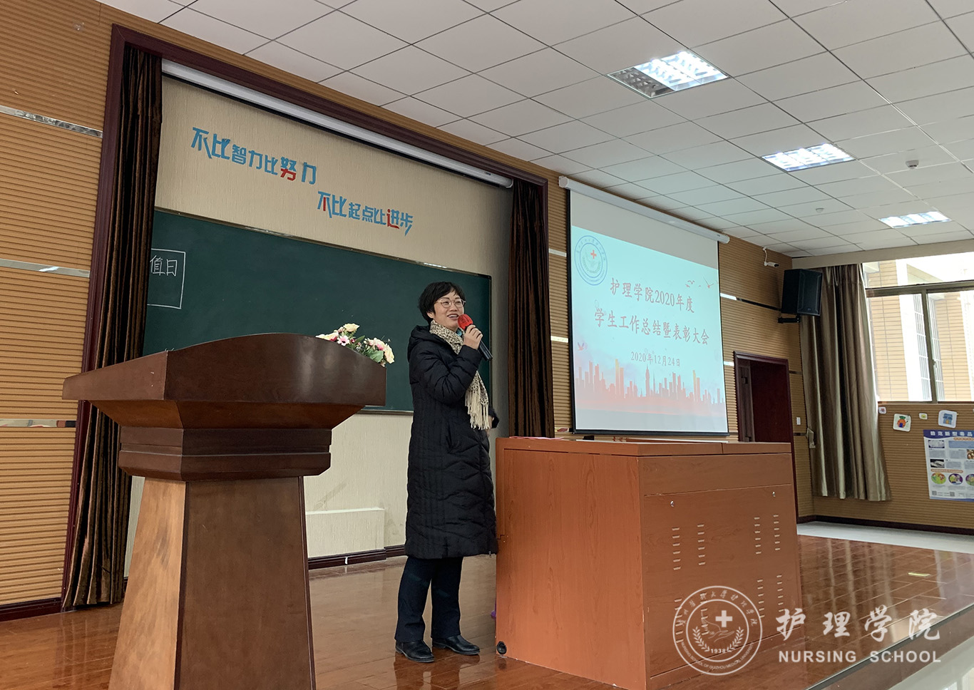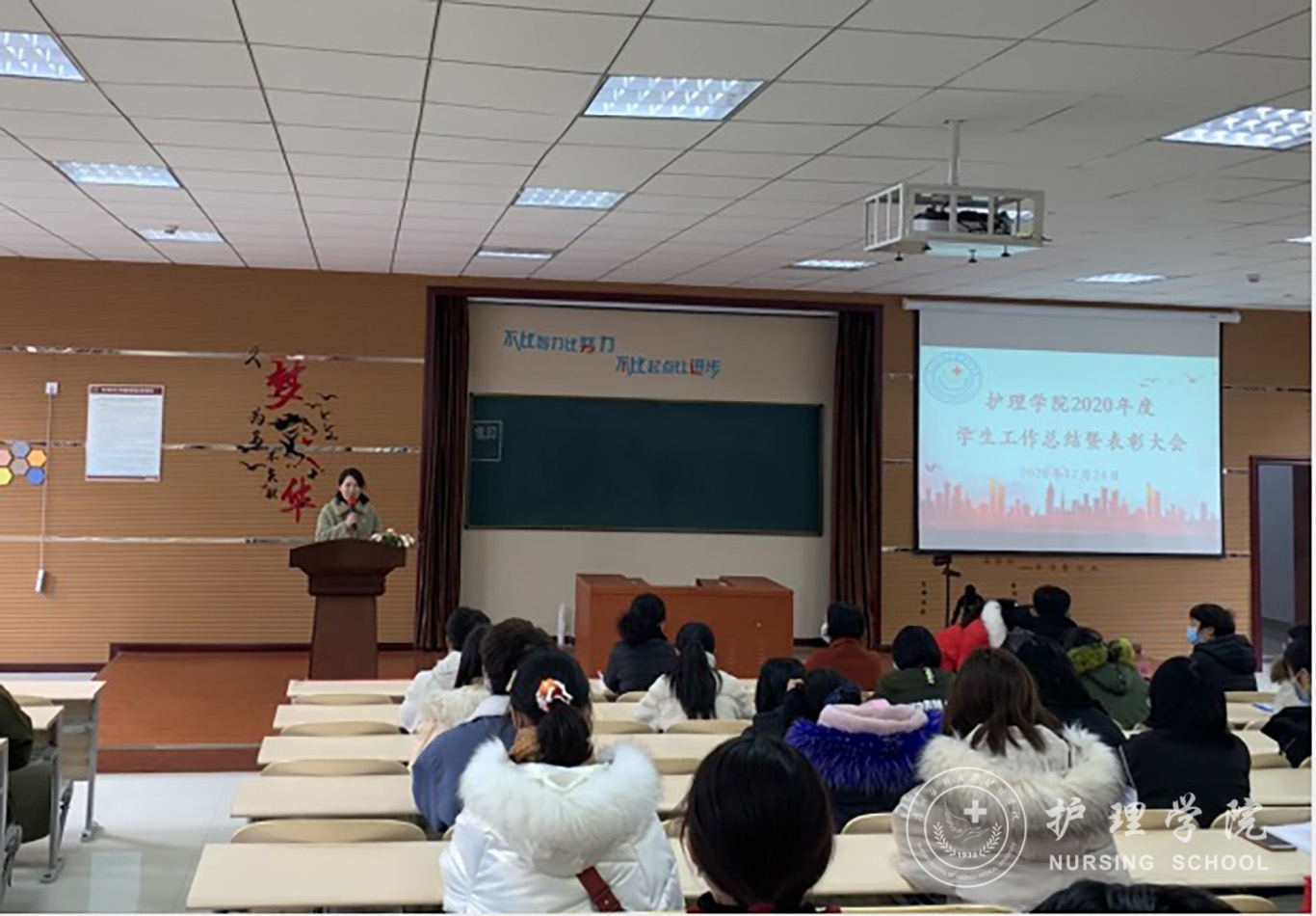 会议第一项议程:永利集团304官方入口党委副书记何为作永利集团304官方入口2020年度学生工作总结报告,何为从党团建设、学生日常管理以及获奖情况等方面对永利2020年度的学生工作进行了总结。第二项议程:永利集团304官方入口党委委员、副院长刘志燕宣读了2020年度学生工作获奖名单。第三项议程:护理学2019级甲班团支书张凤毅作为获奖优秀学生代表作交流发言。第四项议程:永利集团304官方入口党委委员、副院长王秀红讲话,她肯定了大家过去一年取得的成绩,鼓励大家继续努力再创辉煌。第五项议程:永利集团304官方入口党委委员、院长李亚玲讲话,她向这一年来为学院学生工作付出辛勤劳动的老师和学生干部表示感谢,同时希望同学们学好专业课,通过自身的求学和工作经历引导大家对护理行业确立比较清晰的认识。第六项议程:永利集团304官方入口党委书记杨英总结讲话,她对2020年度学生工作给予了肯定,给同学们提出了三点希望:第一、希望同学们牢记学生的身份,努力学习不松懈;第二、希望全体学生干部重视团队精神的培养,热爱专业、热爱班级、热爱学院。第三、希望同学们开拓创新、与时俱进,培养创新精神。大会最后一项议程:参与的领导为获得奖励的优秀个人和先进集体颁奖并合影留念。