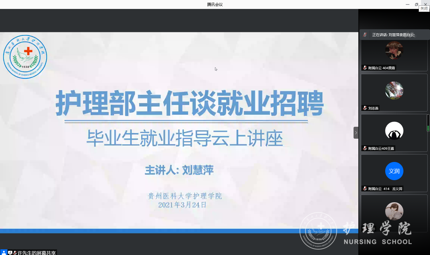 3月24日,为做好2021届毕业生就业工作,提高永利毕业生就业招聘面试通过率,永利特邀304永利集团登录入口附属白云医院副院长、护理部主任刘慧萍为大家进行了一场毕业生就业指导云上讲座。永利集团304官方入口党委副书记何为、党委委员、副院长刘志燕出席了会议,校本部及四个教学点辅导员、全体同学毕业生参加了此次会议。