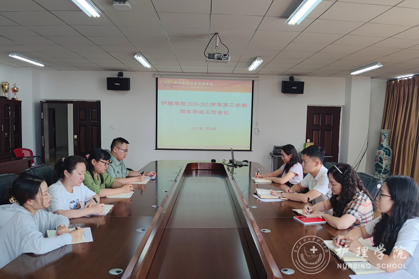 7月20日,为总结本学期学生工作情况,部署假期重点工作计划,永利集团304官方入口在南校区百川楼五楼会议室召开了2020-2021学年第二学期期末学生工作会议。学院党委副书记何为、正科级组织员曾敏、团委副书记王晓玲、学生科副科长毕丽以及全体辅导员参加了本次会议,会议由何为主持。