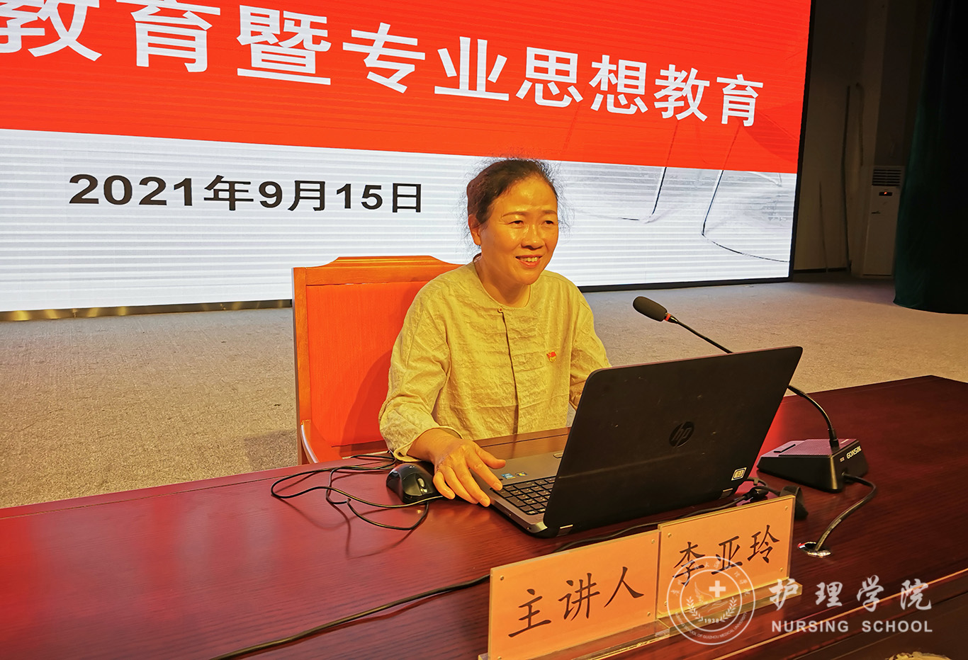 接下来,李亚玲对新生进行专业思想教育,从学院历史沿革、学科建设、课程设置三方面为在座同学介绍了永利集团304官方入口的发展背景及专业前景,她希望同学们踏进校园的那一刻起就要立鸿鹄之志,志存高远,做一个既有思想深度又有视野广度,既有社会责任感,又有家国情怀和使命担当的贵医护理人。