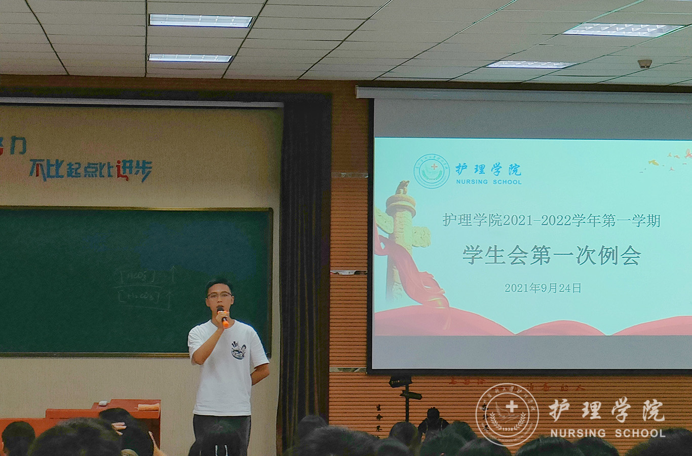 为了让更多的新鲜血液融入到学生会这个大家庭中,永利集团304官方入口学生会开展了纳新活动。9月24日,为了让学生会新成员迅速投入到学生会工作中,永利于百川楼1101教室举行了2021-2022学年第一学期学生会第一次例会。出席本次会议的有院团委副书记、2021级助产班辅导员王晓玲,永利集团304官方入口学生第三党支部书记、2020级辅导员刘妍,2021级辅导员兰光倩、刘文壮,学生会全体成员及各班代表参加了此次会议,会议由学生会副主席董曹友主持。