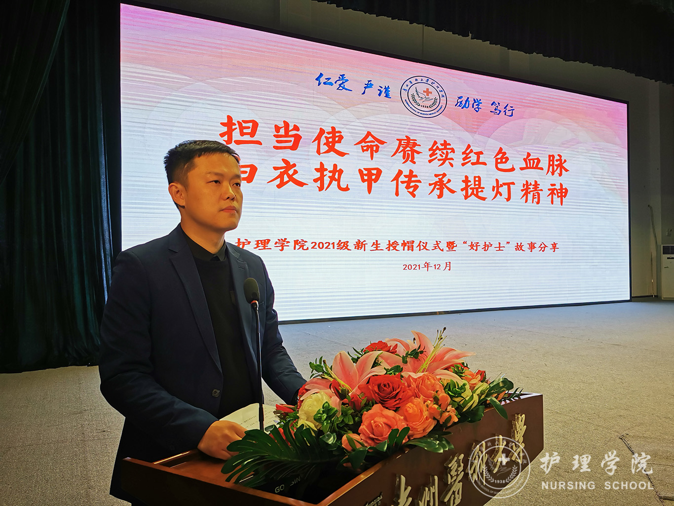 12月8日,为纪念“一二·九”运动86周年,传承和弘扬护理事业的光荣传统,激励新生增强使命感、责任感和归属感,在新时代新征程中勤奋学习,奋勇争先,永利集团304官方入口在南校区大礼堂举行了以“担当使命赓续红色血脉、白衣执甲传承提灯精神”为主题的2021级新生授帽仪式暨“好护士”故事分享活动,由28位优秀护理前辈为724名护理新生授帽传烛。活动由院党委副书记兼纪委书记何为主持。