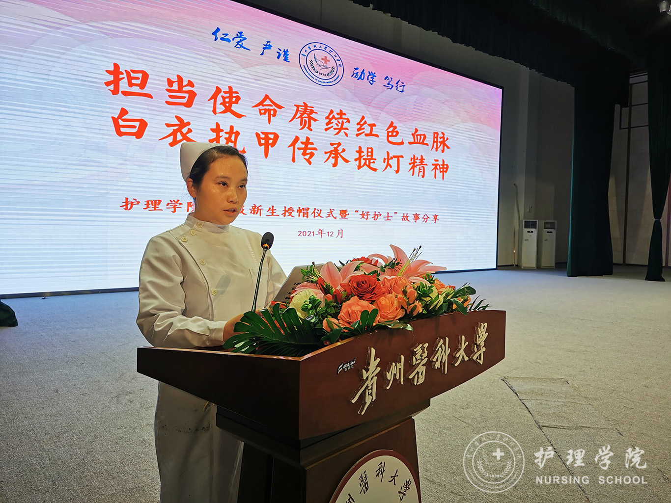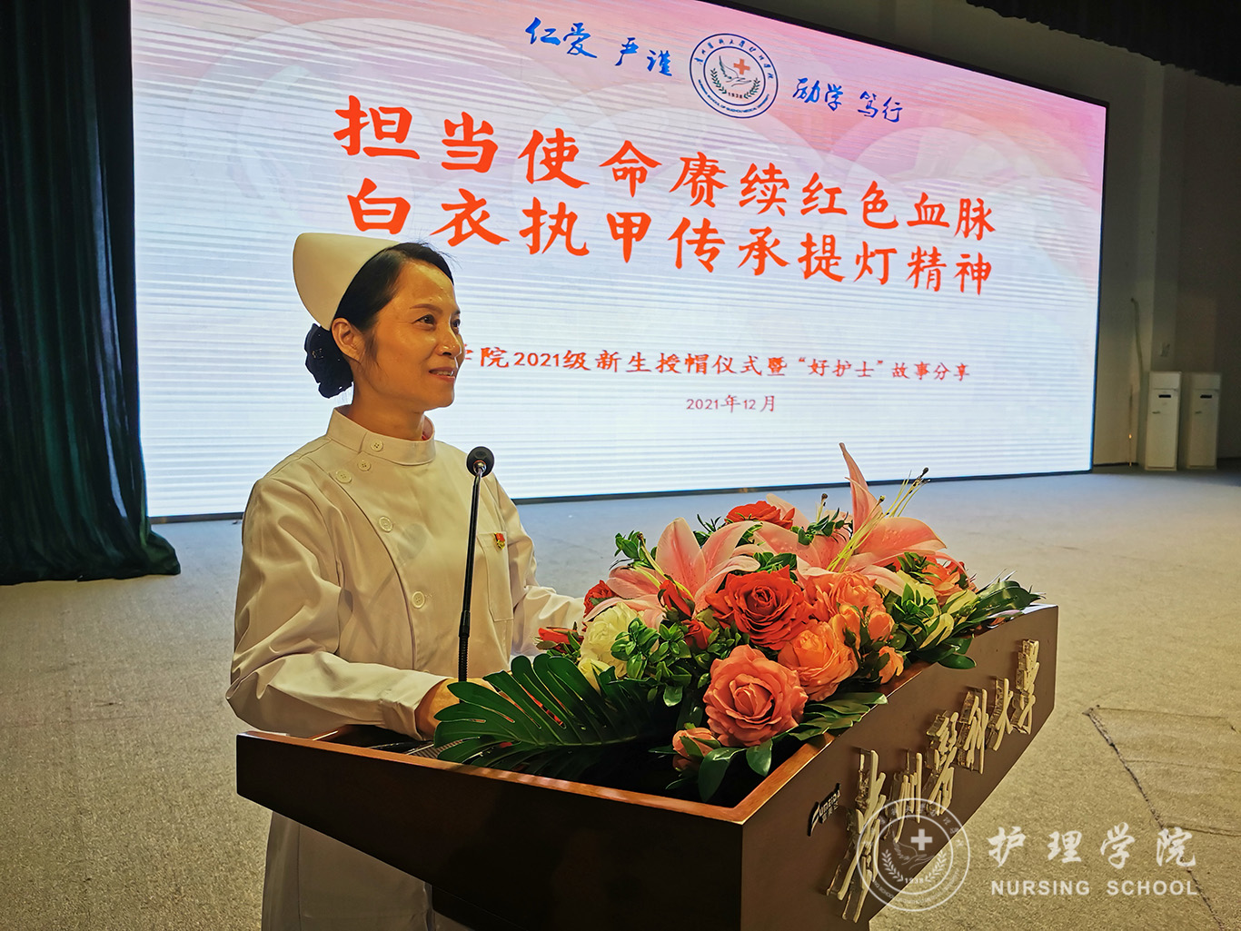 最后,附属医院护师黄燕莉、李庭庭作“好护士”故事分享,勉励全体护生刻苦学习、扎实本领,在困难中进步,在进步中成长,早日成长为一名优秀的白衣天使。