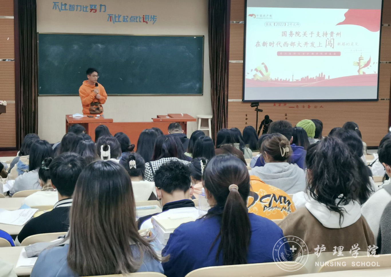 会议共有六项议程。首先,由学生会后勤部成员姜志成带领全体同学共同学习了《国务院关于支持贵州在新时代西部大开发上闯新路的意见》的相关文件内容。接着,兰光倩以案例分享的形式,为同学们普及了“八五”普法中与疫情防控相关的法律知识点。随后,学生会各部门依次进行上学年工作汇报,对上学期的工作情况进行总结并对本学期部门建设提出规划和展望。在此过程中,学生会新老成员及各班代表陆续发言,分享自己进入学生会以来的感悟和收获并对学生会工作提出意见和建议。