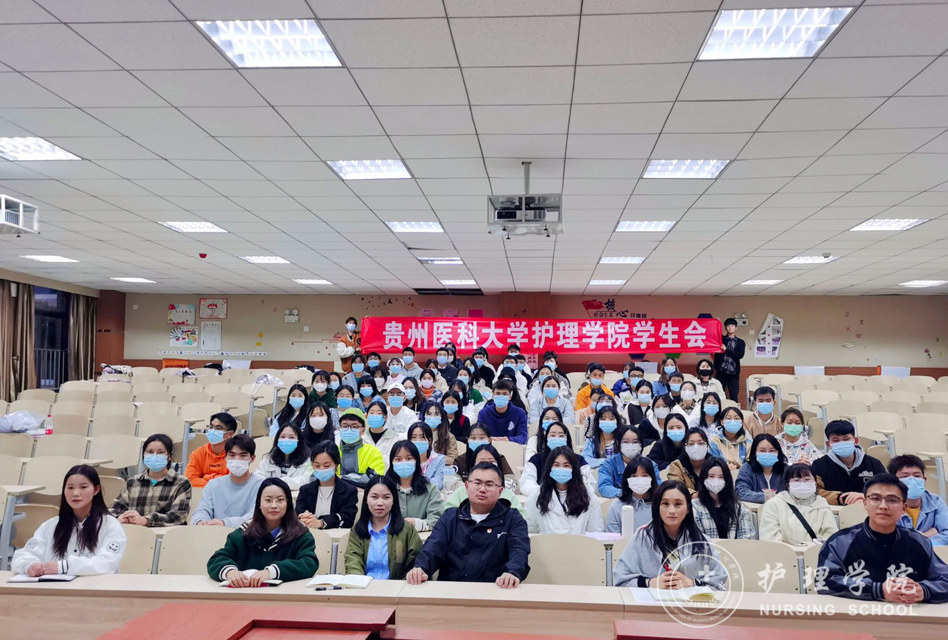 最后,参会老师结合上学期学生会的工作情况,结合实际,对学生会以后的工作提出了几个希望:一是希望学生干部要充分调动同学们的积极性,搞好班级建设,增强凝聚力;二是请同学们配合学校做好疫情防控工作,遵守学校防控相关要求。三是同学们应培养创新精神,多关注国家时事,从时事中关注问题,做到思有所得。最后,全体参会人员合影留念。