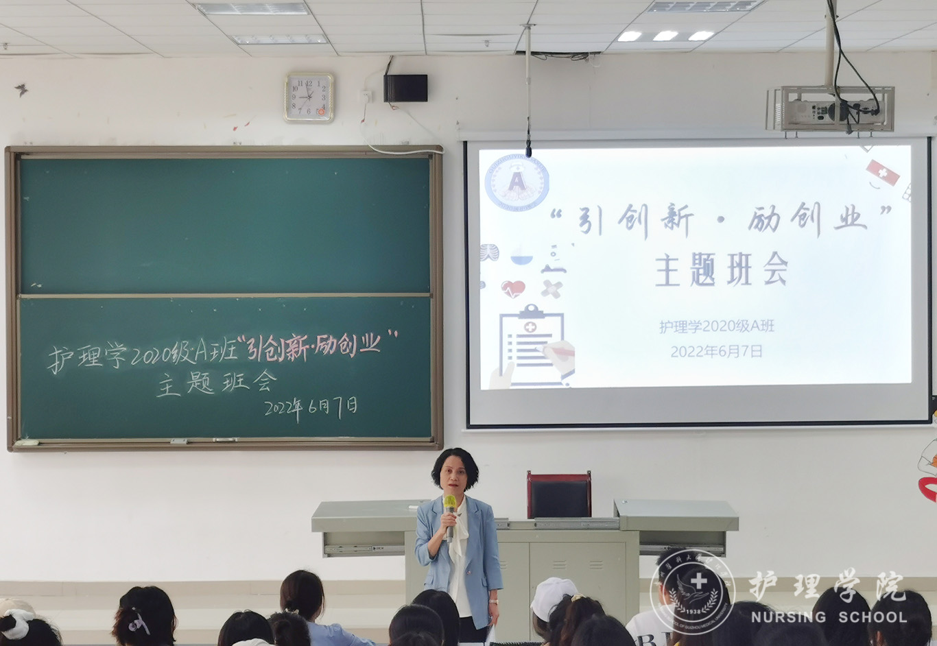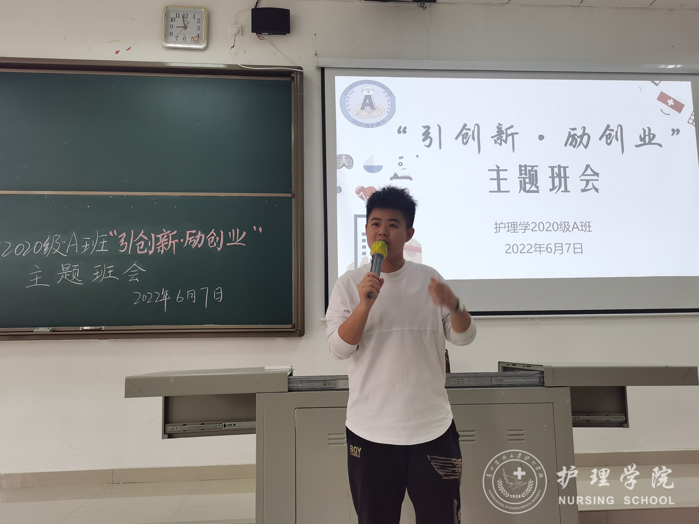 6月7日,为引导学生增强创新意识提升创业能力,护理学2020级A班在南校区4101教室以“引创新·励创业”为题召开了主题班会。本次班会由辅导员刘妍主持,永利集团304官方入口党委书记杨英、“建行杯”贵州省第七届“互联网+”大学生创新创业大赛贵州省赛“职教赛道”铜奖获得者罗杨朝秀及护理学2020级A班全体同学参会。