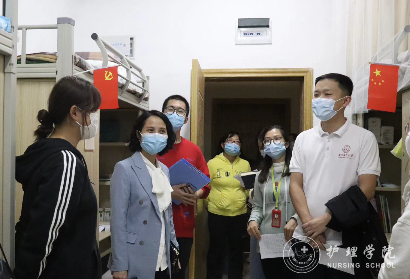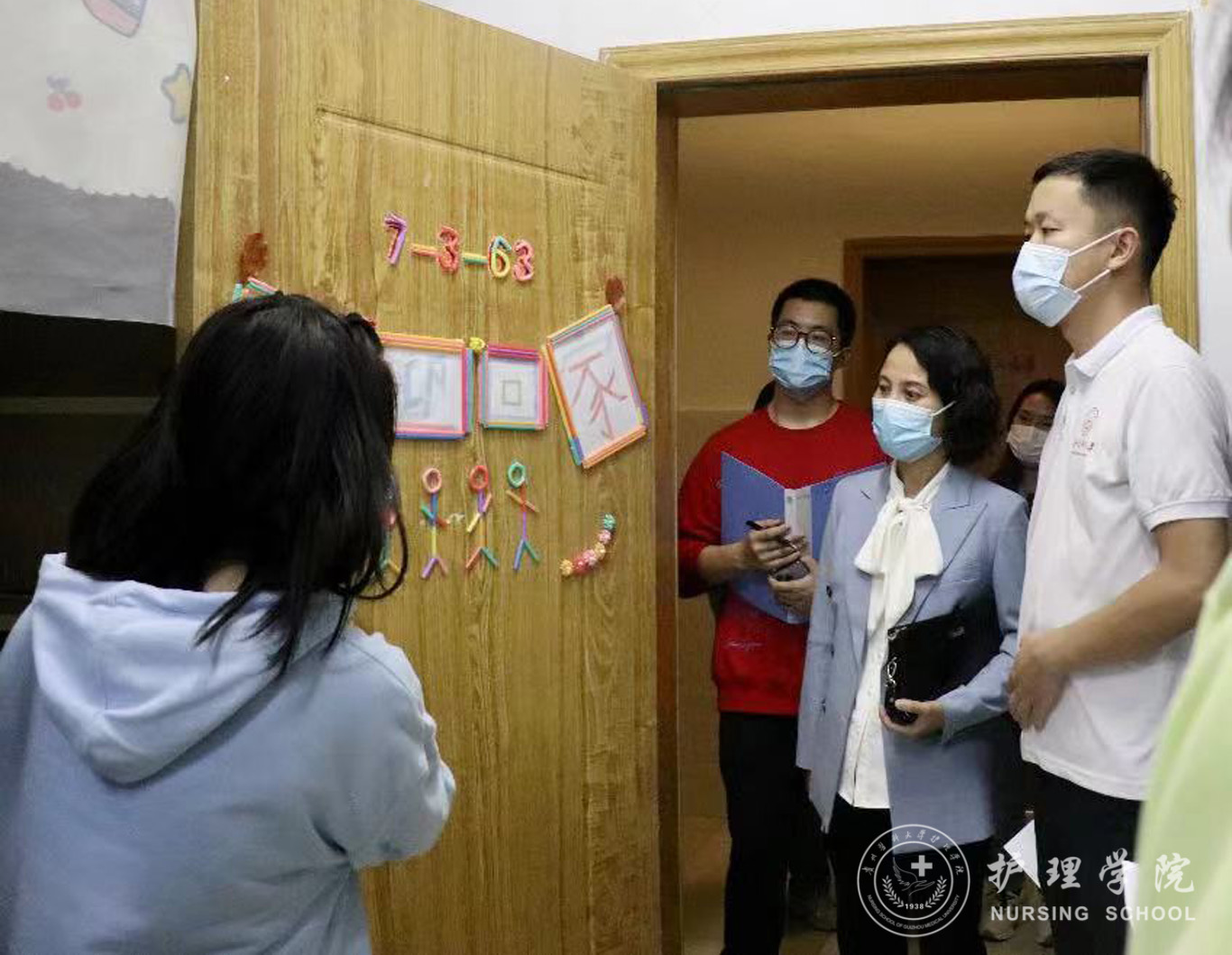 同时,领导、老师们也走进2021级学生寝室进行安全隐患排查,详细询问了同学们关于线上学习、日常生活等方面的情况,并叮嘱同学们要注意公共卫生和个人卫生,加强身体锻炼,做好个人防护,合理安排学习和生活。