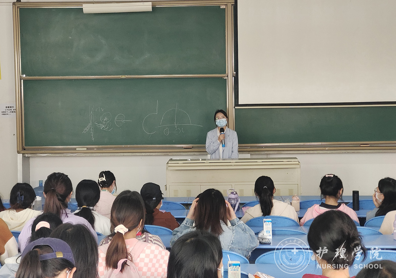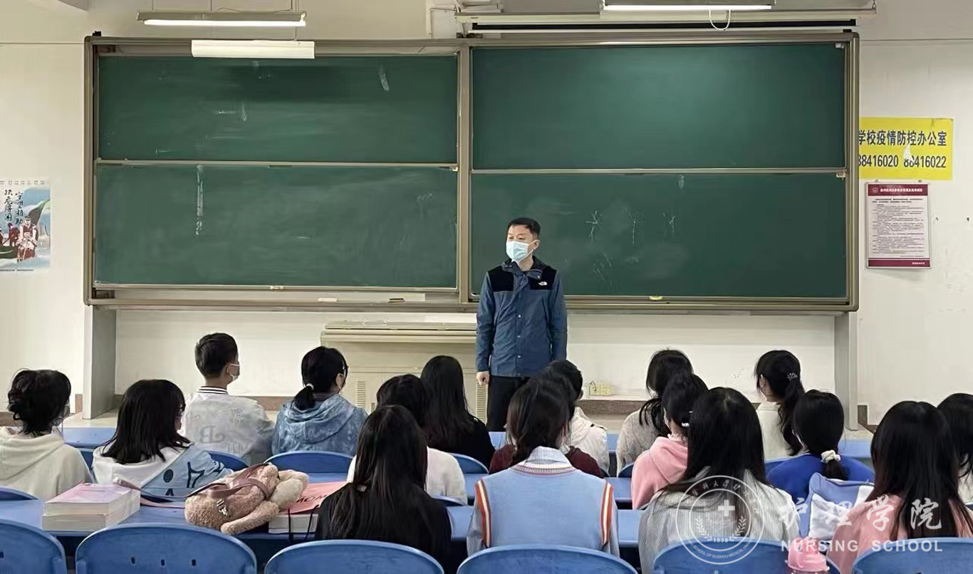 课后,毕丽和刘妍分别在各自带班学生中召开了班会。班会上,一是对同学们在疫情期间积极支援观山湖区、花溪区疫情防控工作给予高度肯定。二是要求同学们要将重心放在专业学习上,肩负起为人类健康护航的使命。三是动员全体同学参与“百日冬锻”校园跑活动,加强身体锻炼。在宿舍看望同学时,两位老师向同学们转达了学院领导对同学们的关心,针对性地开展了安全用电等安全教育,叮嘱同学们加强时间管理,养成良好的学习和生活习惯。