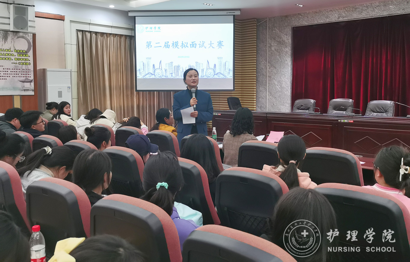 3月9日,为提升毕业生的竞聘能力与面试技巧,永利集团304官方入口第二届模拟面试大赛决赛在北校区道德讲堂举行。永利集团304官方入口党委书记杨英、党委副书记兼纪委书记何为、正科级组织员曾敏、护理人文教研室副主任张仁莉、护理学妇儿科教研室副主任徐锟、团委副书记王晓玲、辅导员杨叶卿、刘妍出席并担任评委,2019、2020级各班学生代表参加了现场观摩,本次比赛由助产学2020级赵雪同学主持。